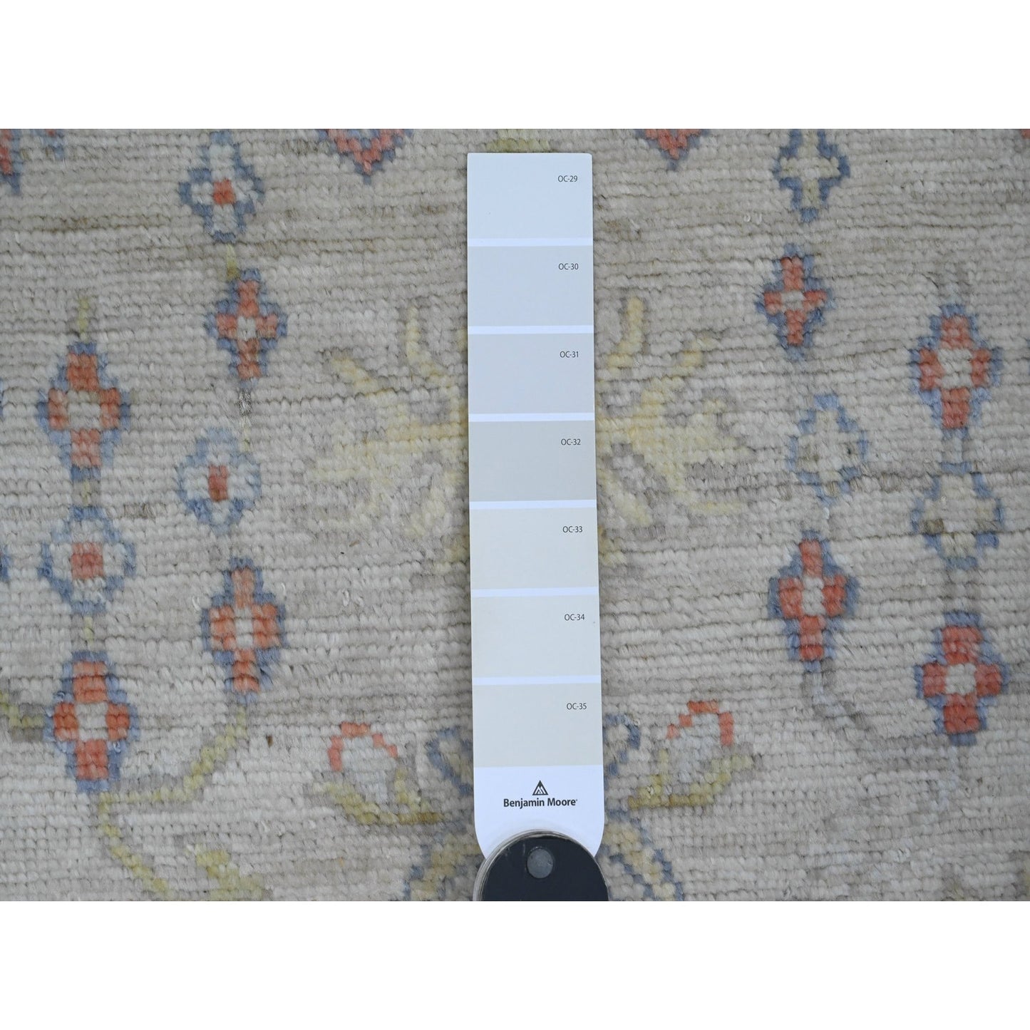 4'X6' Gray Hand Knotted Afghan Angora Oushak Leaf Design Pure Wool Rug