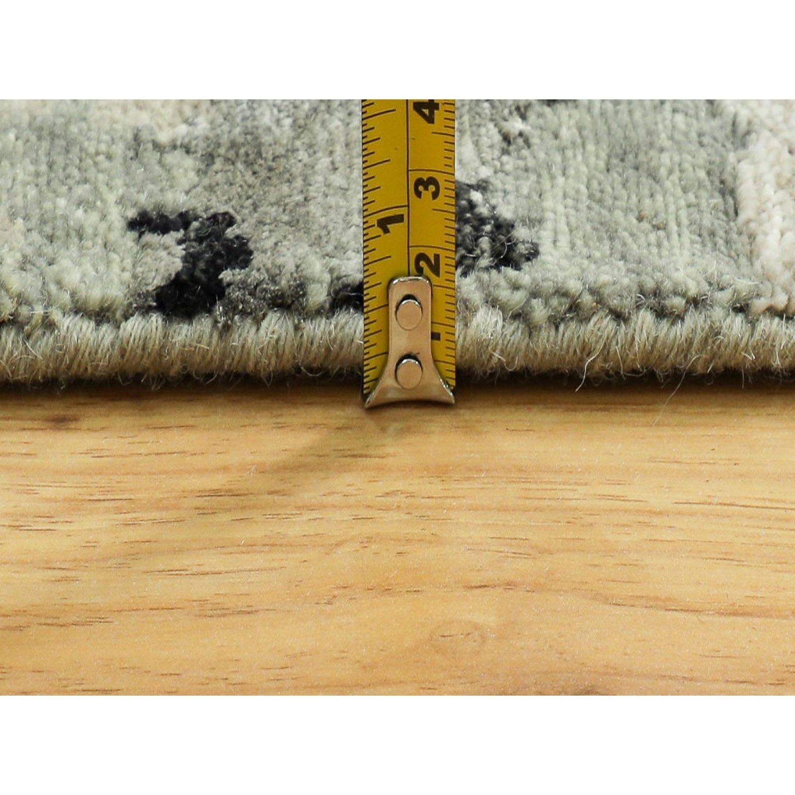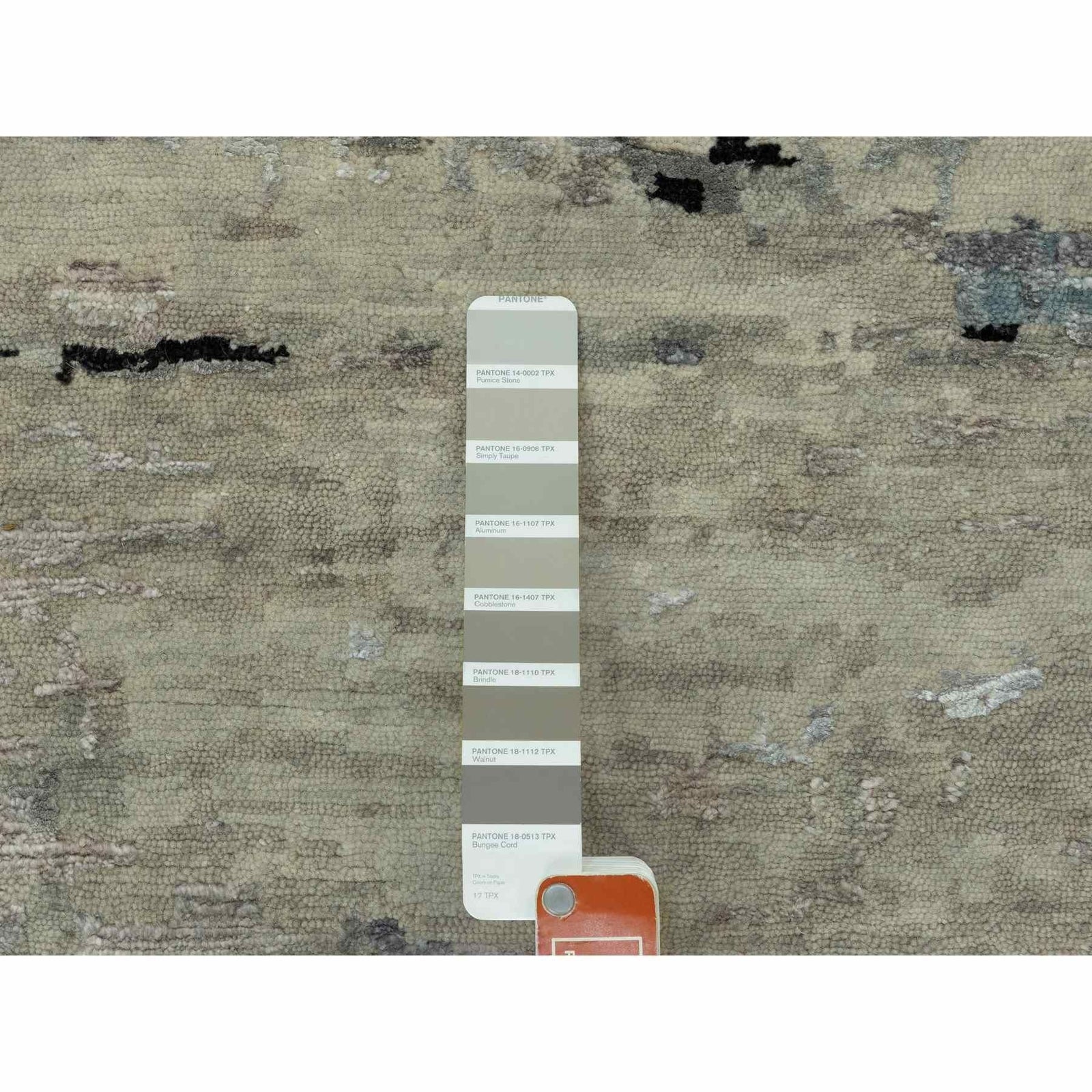 4'X6' Silver, Blue Wool And Silk Modern Abstract Design Hand Knotted Rug