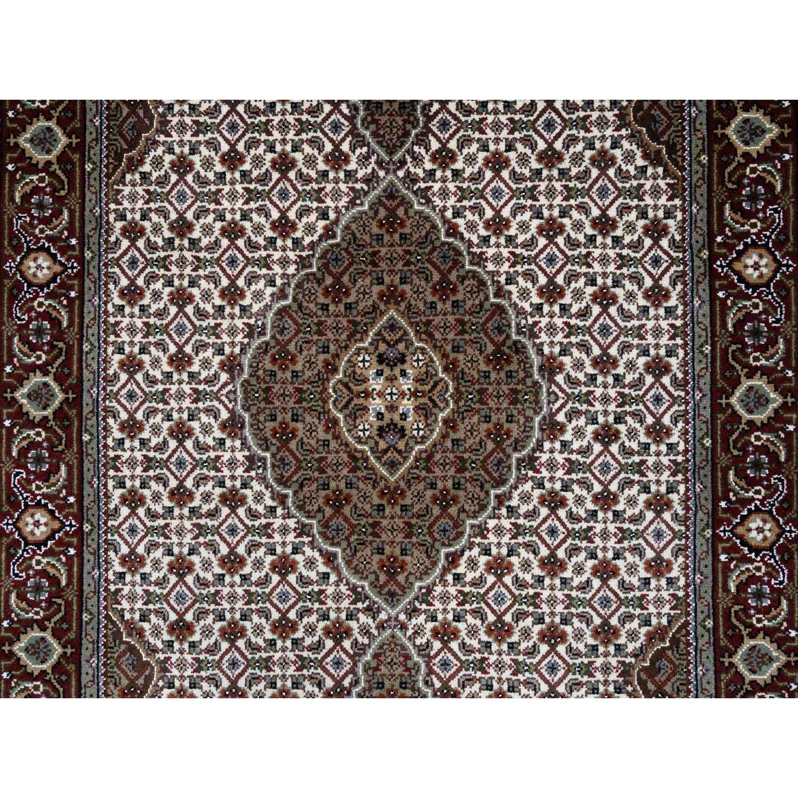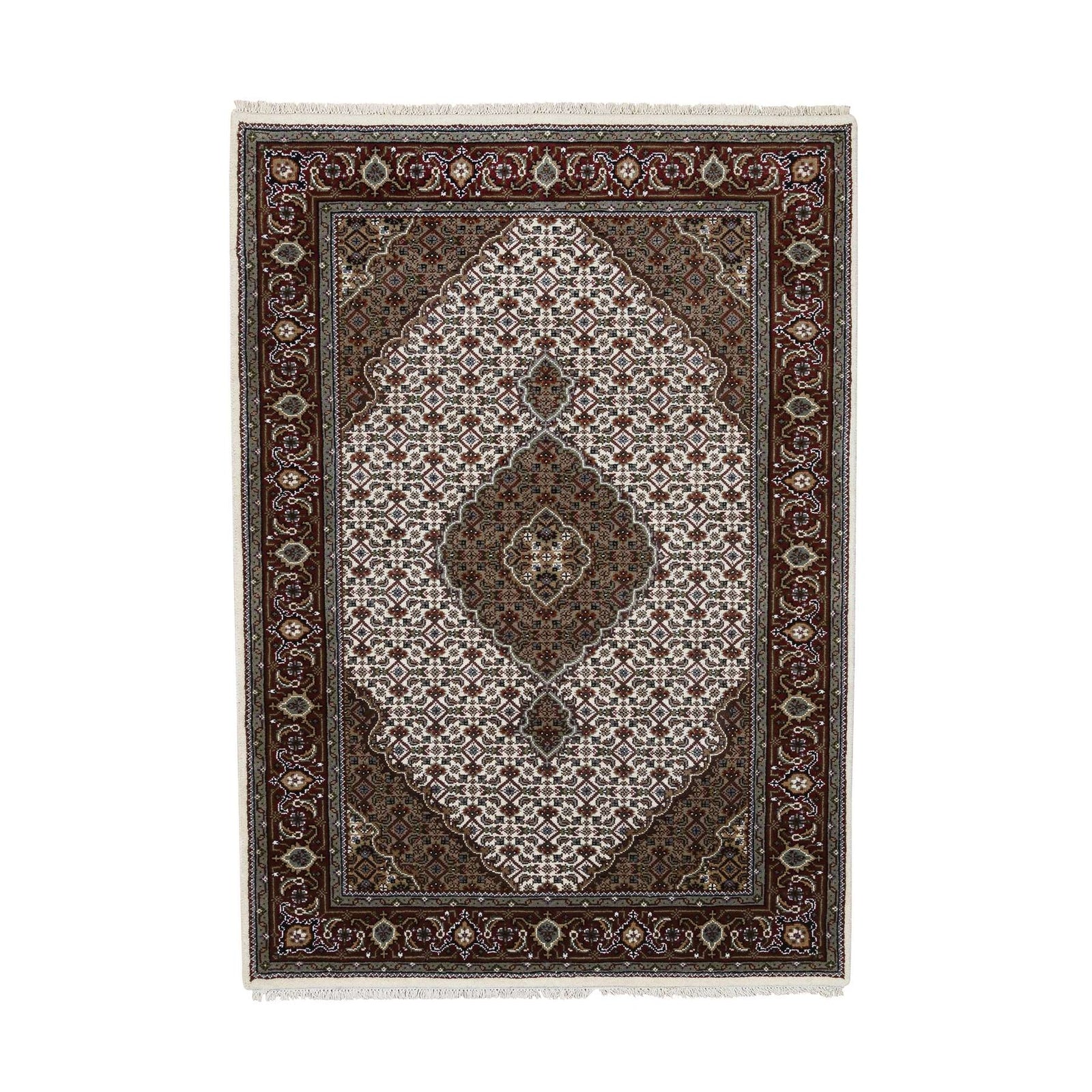 4'X6'1" Ivory Hand Knotted Tebraz Mahi Wool Ad Silk Oriental Rug