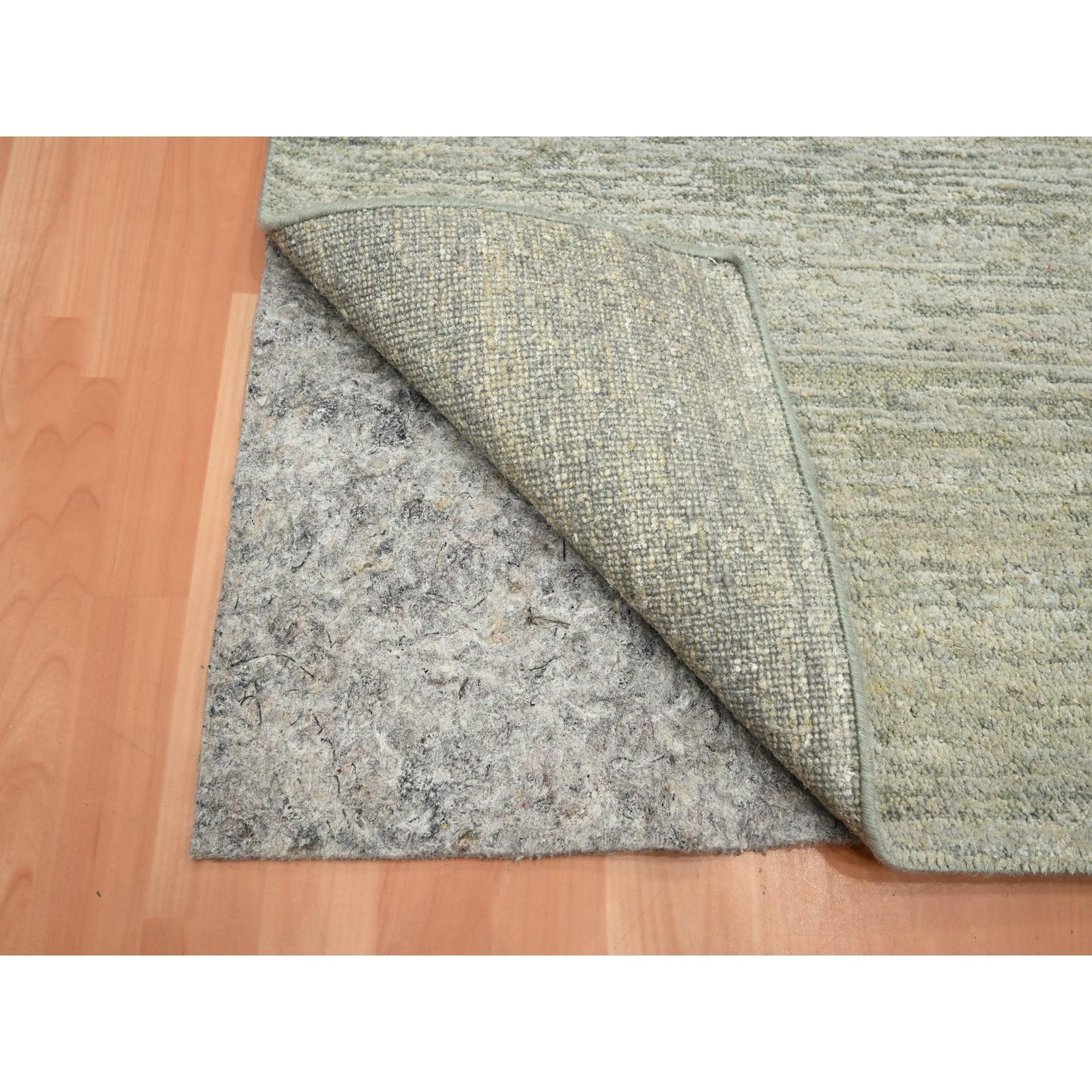 4'X6'1" Laurel Green Hand Knotted Plain Solid Design Pure Silk Rug