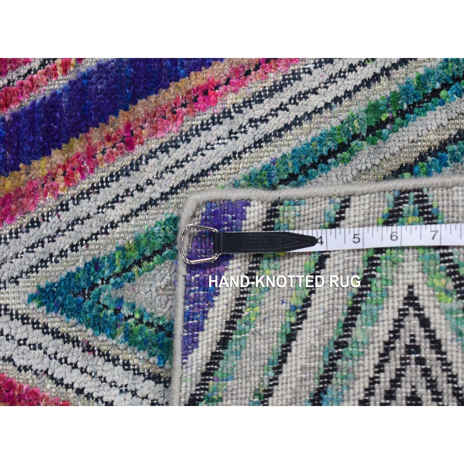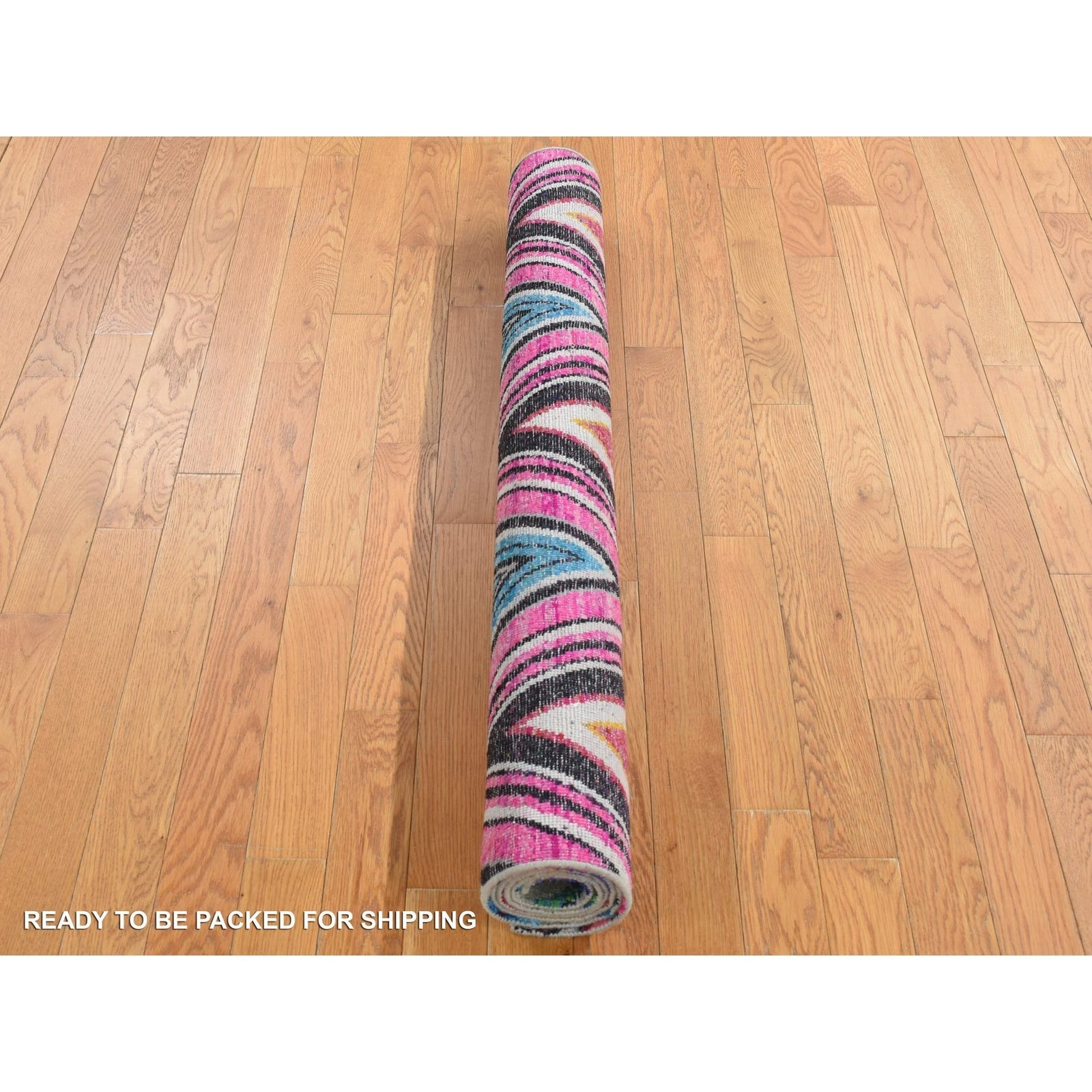 4'X6'2" Hot Pink Hand Knotted Chevron Design Silk With Wool Rug