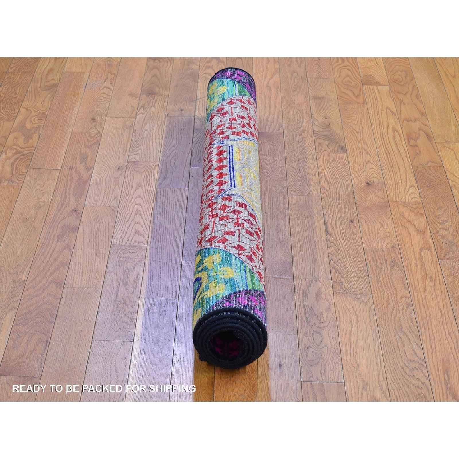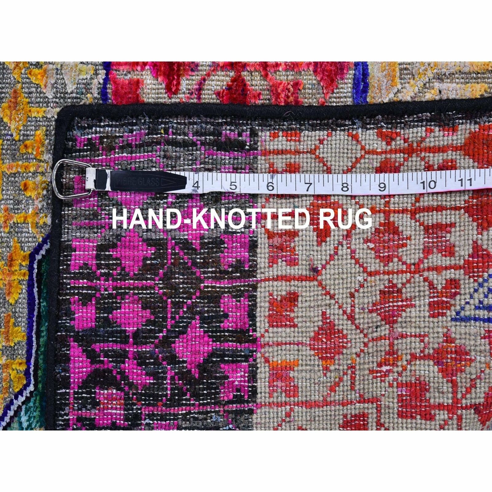 4'X6'2" Sari Silk With Textured Wool Mamluk Design Hand Knotted Rug
