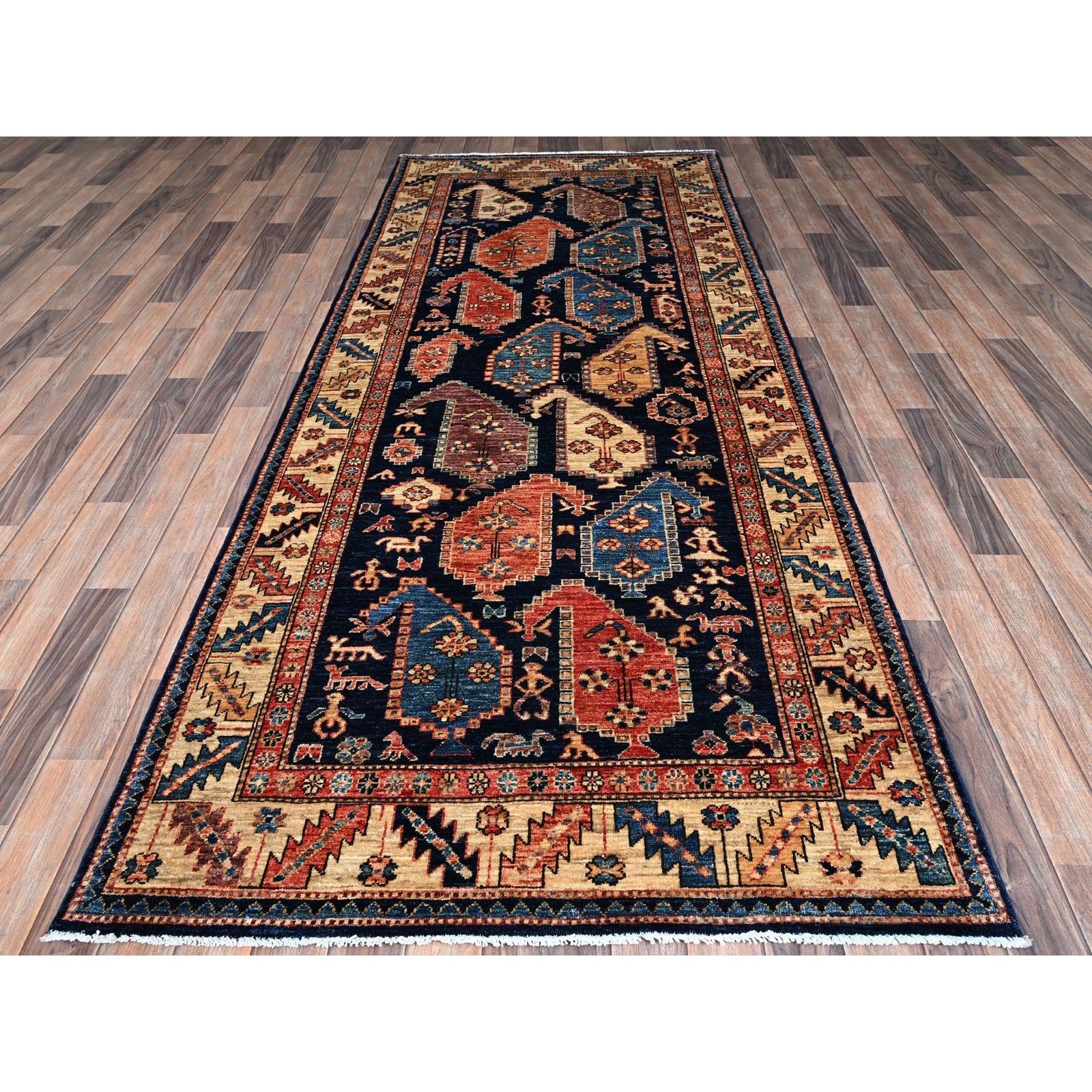 4'X9'9" Midnight Blue Large Paisley Design Wool Hand Knotted Runner Rug