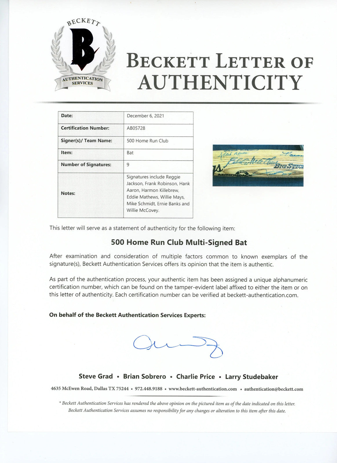 500 Home Run Club Autographed Rawlings Adirondack Bat (Beckett)