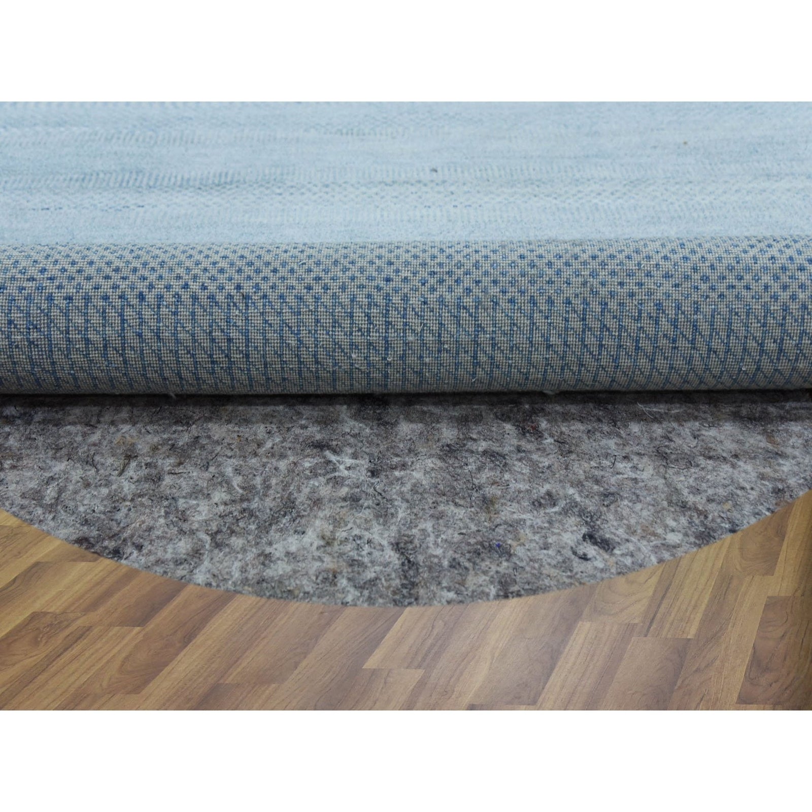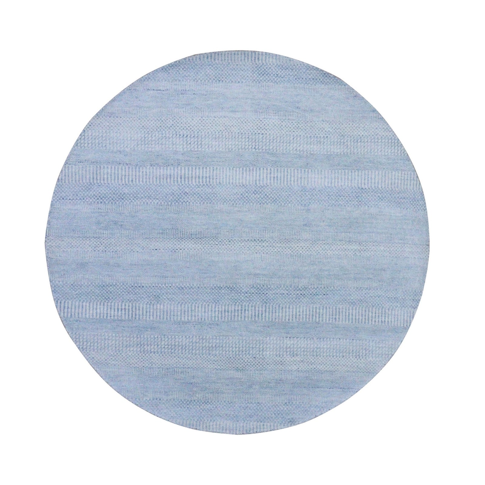 5'10"X5'10" Blue Wool And Silk Hand Knotted Modern Grass Design Round Rug