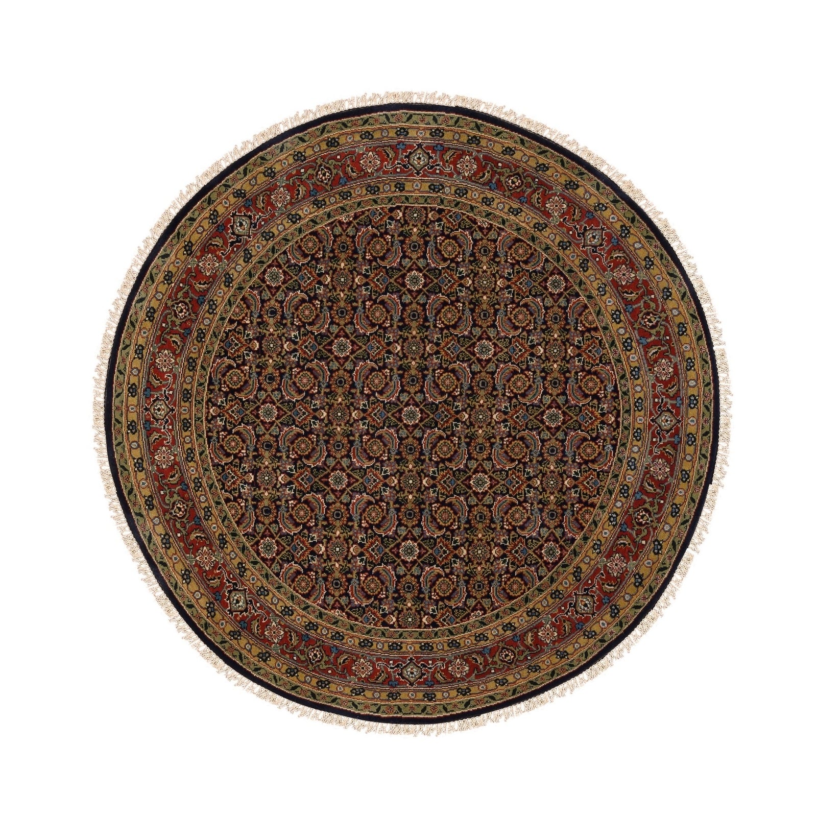 5'10"X5'10" Hand Spun Wool Blue All Over Herrita Design Hand Knotted Rug