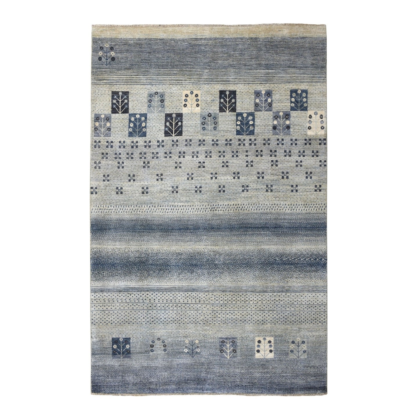 5'10"X8'6" Blue Kashkuli Gabbeh Pictorial Pure Wool Handmade Oriental Rug