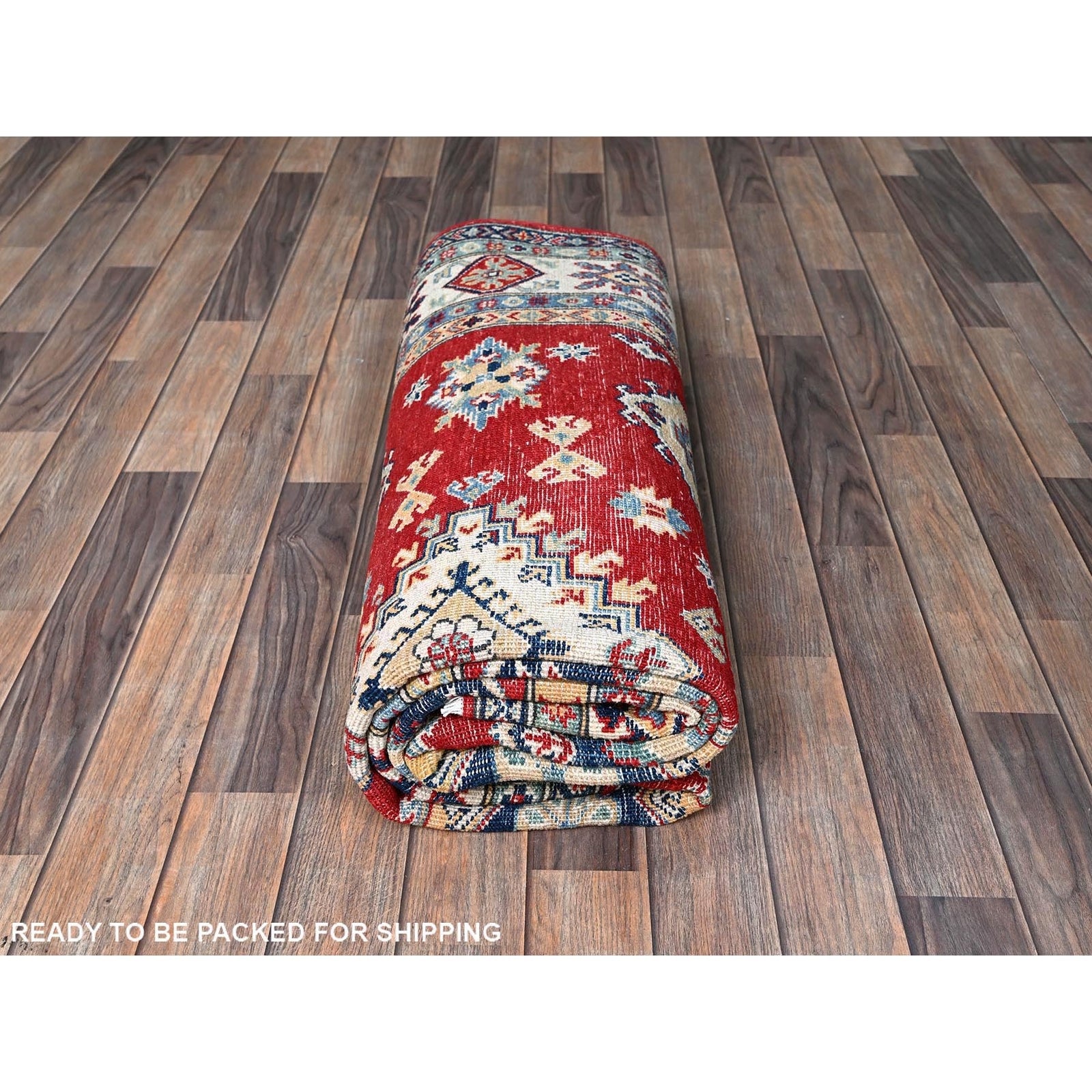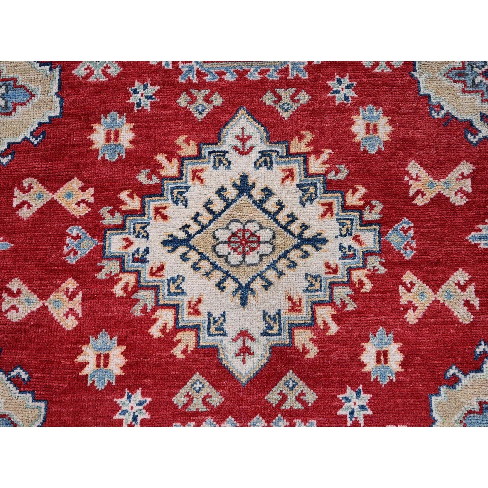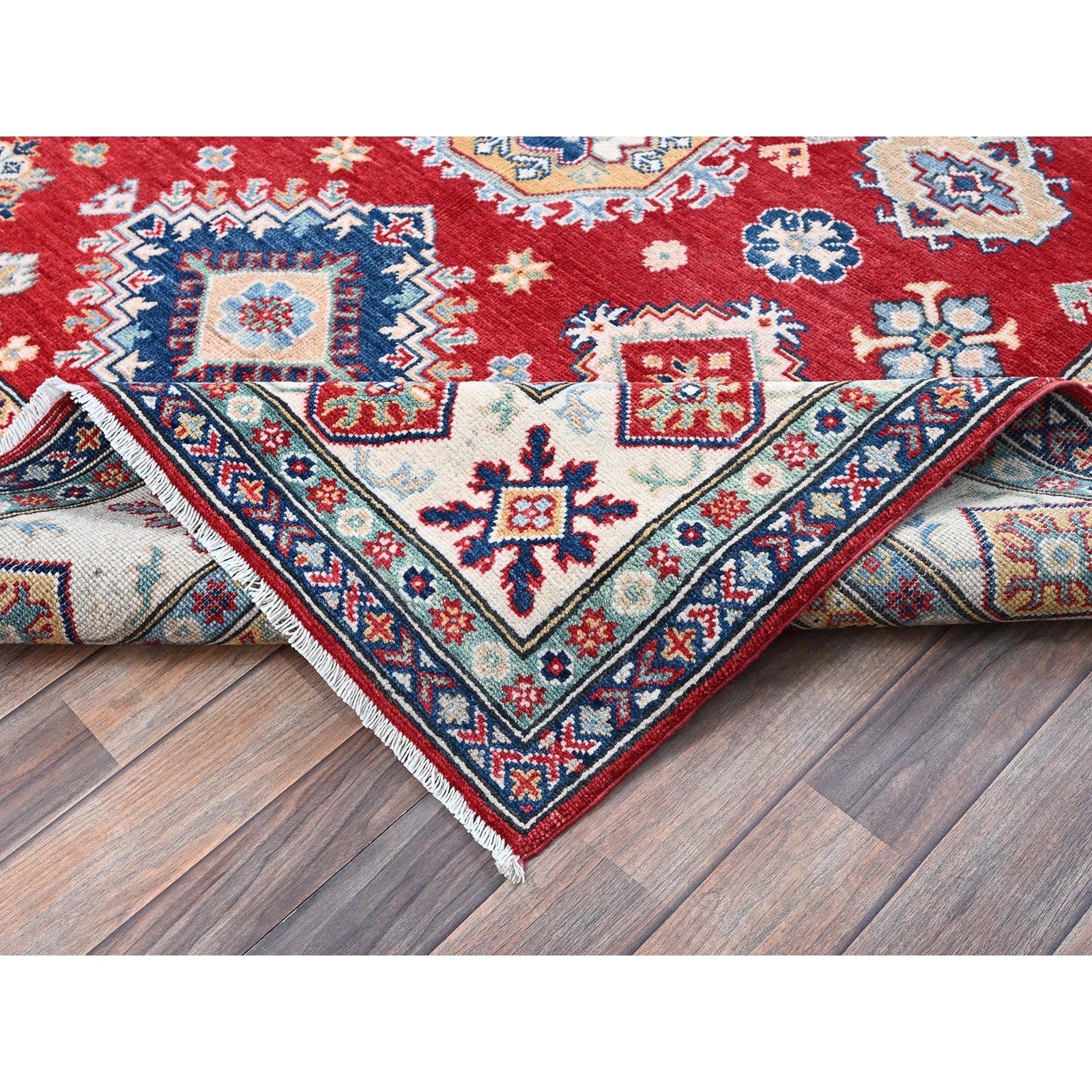 5'10"X8'8" Red Kazak With Geometric Medallions Design Wool Hand Knotted Rug