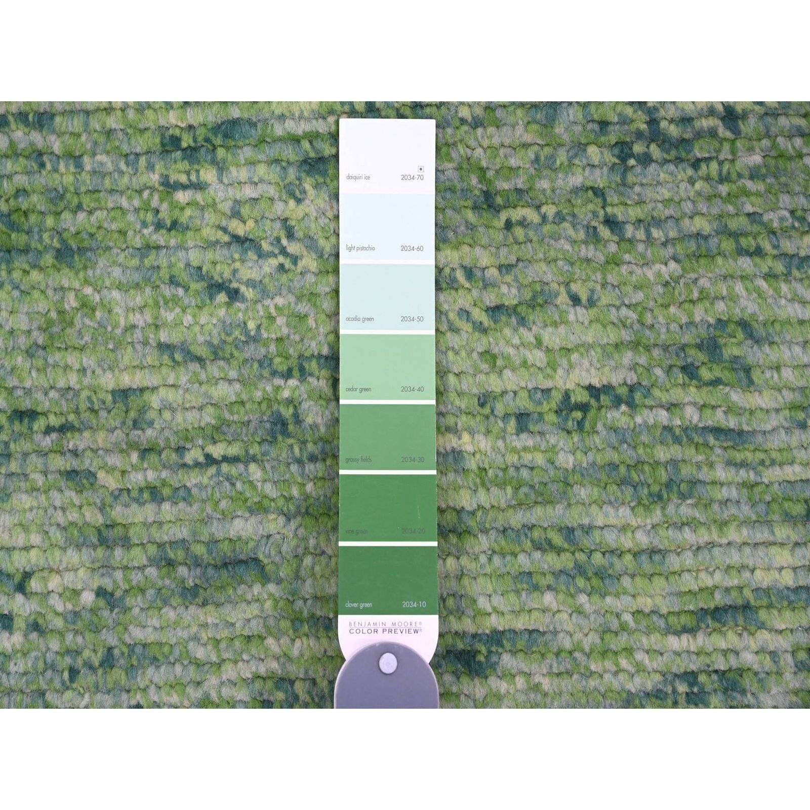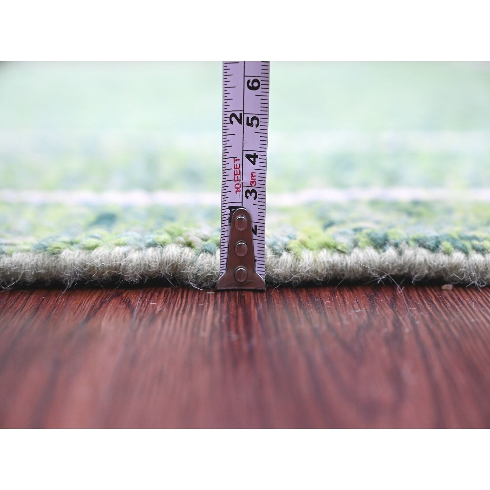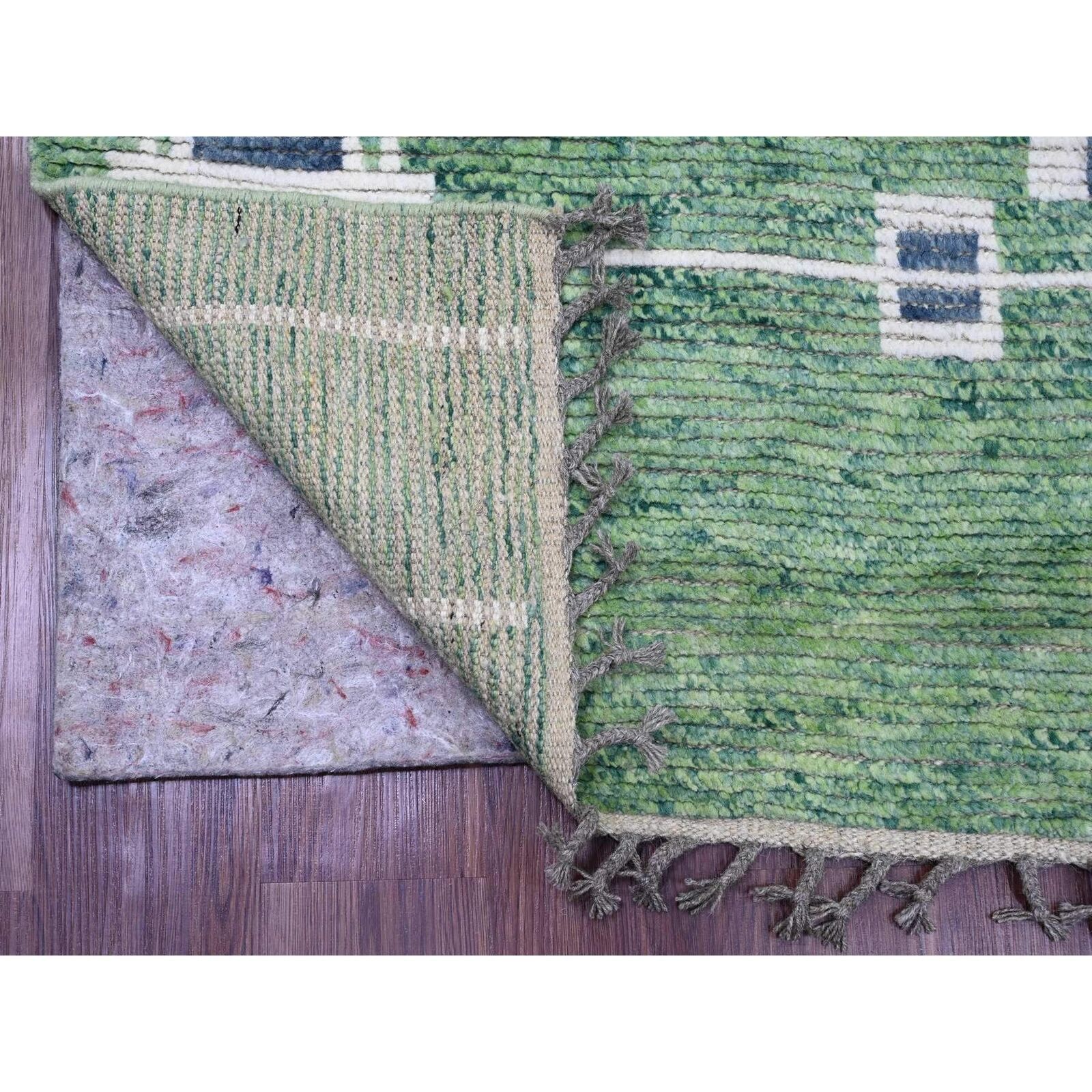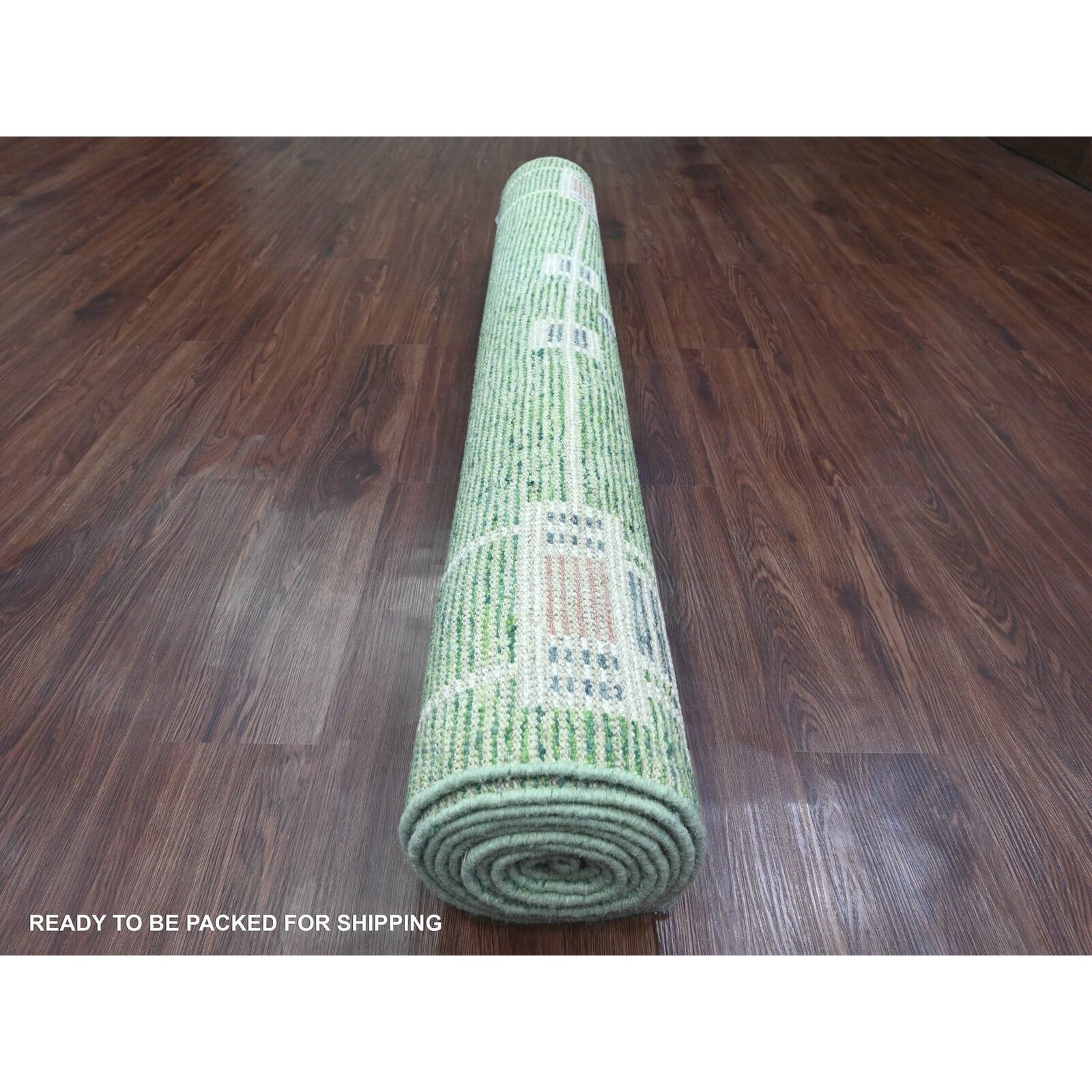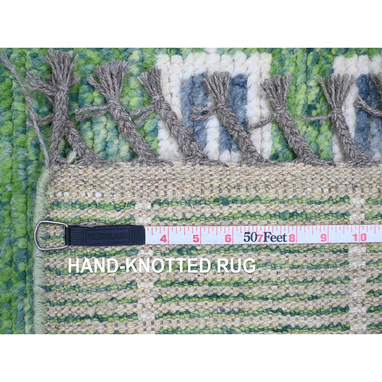 5'1"X12'3" Green Moroccan Weave Line Design Wool Hand Knotted Runner Rug