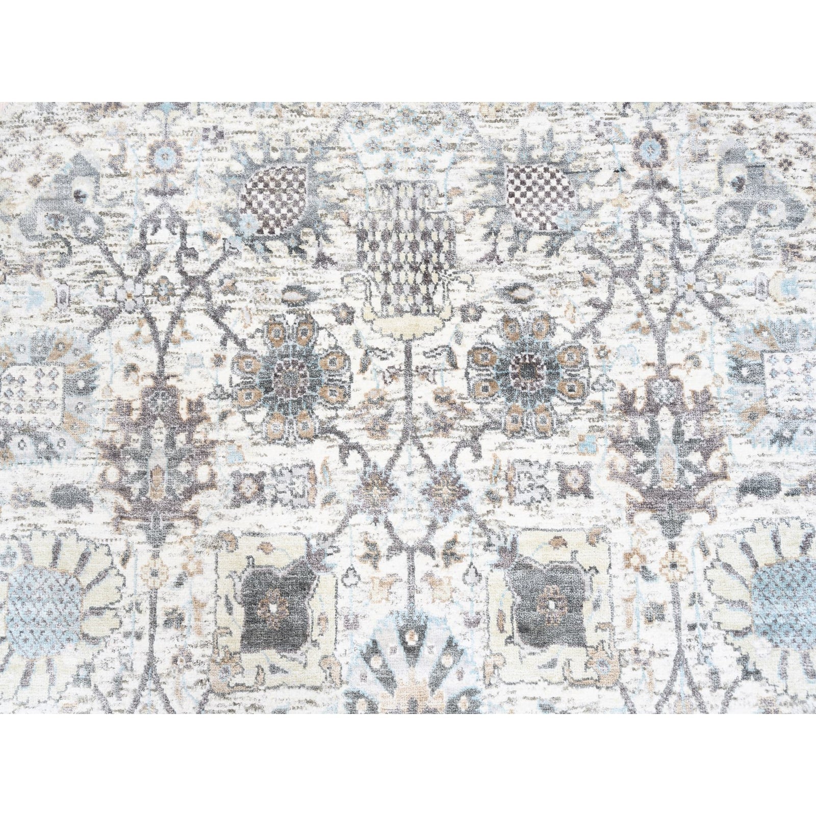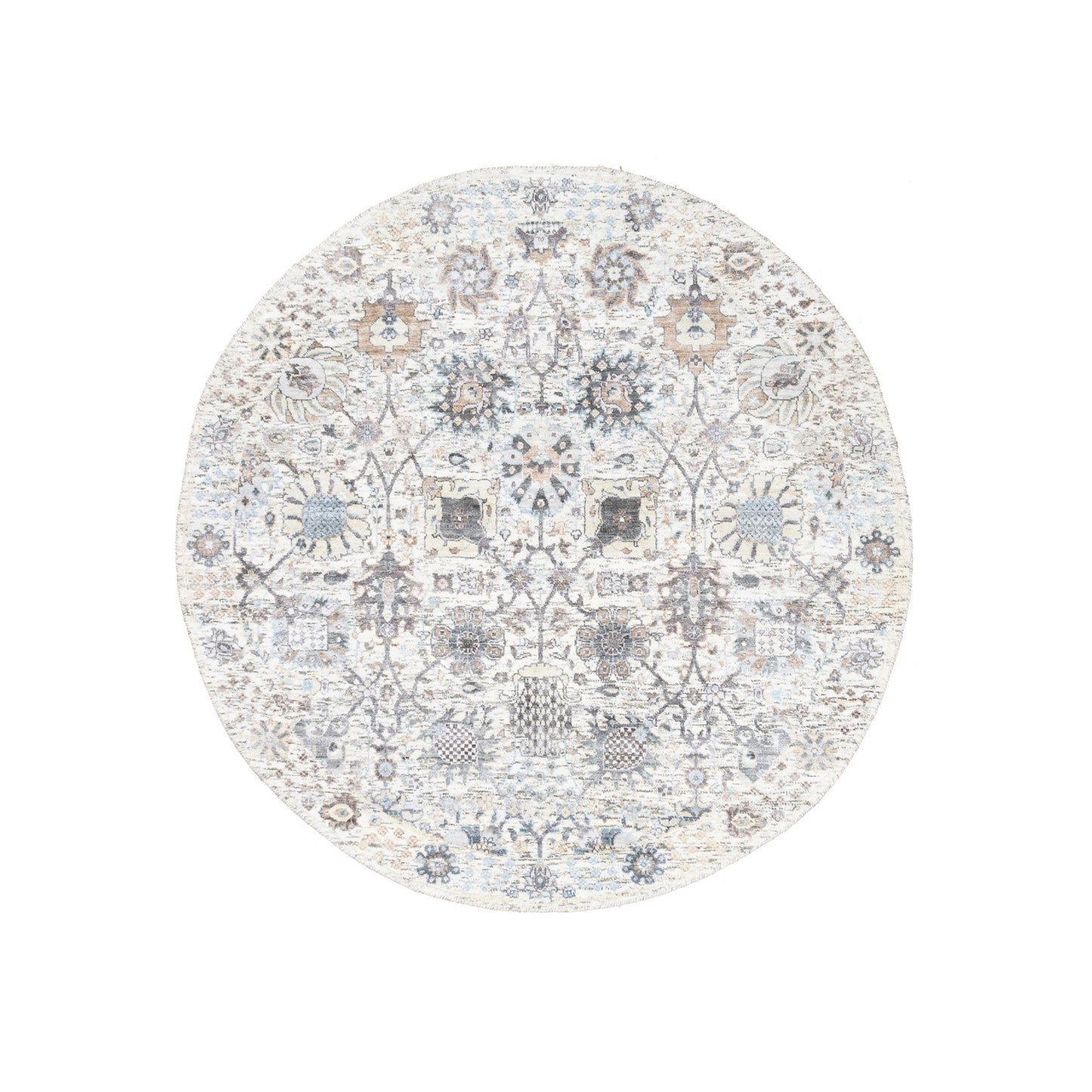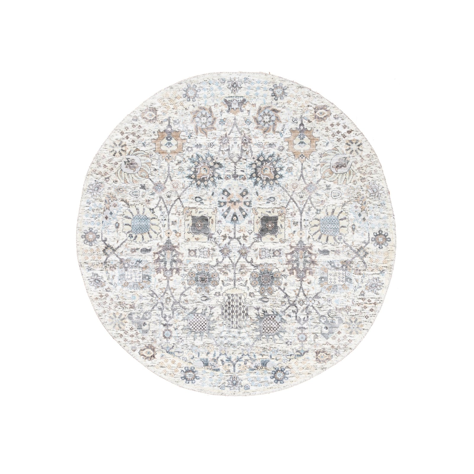 5'1"X5'1" Ivory Silk With Textured Wool Tebraz Hand Knotted Oriental Rug