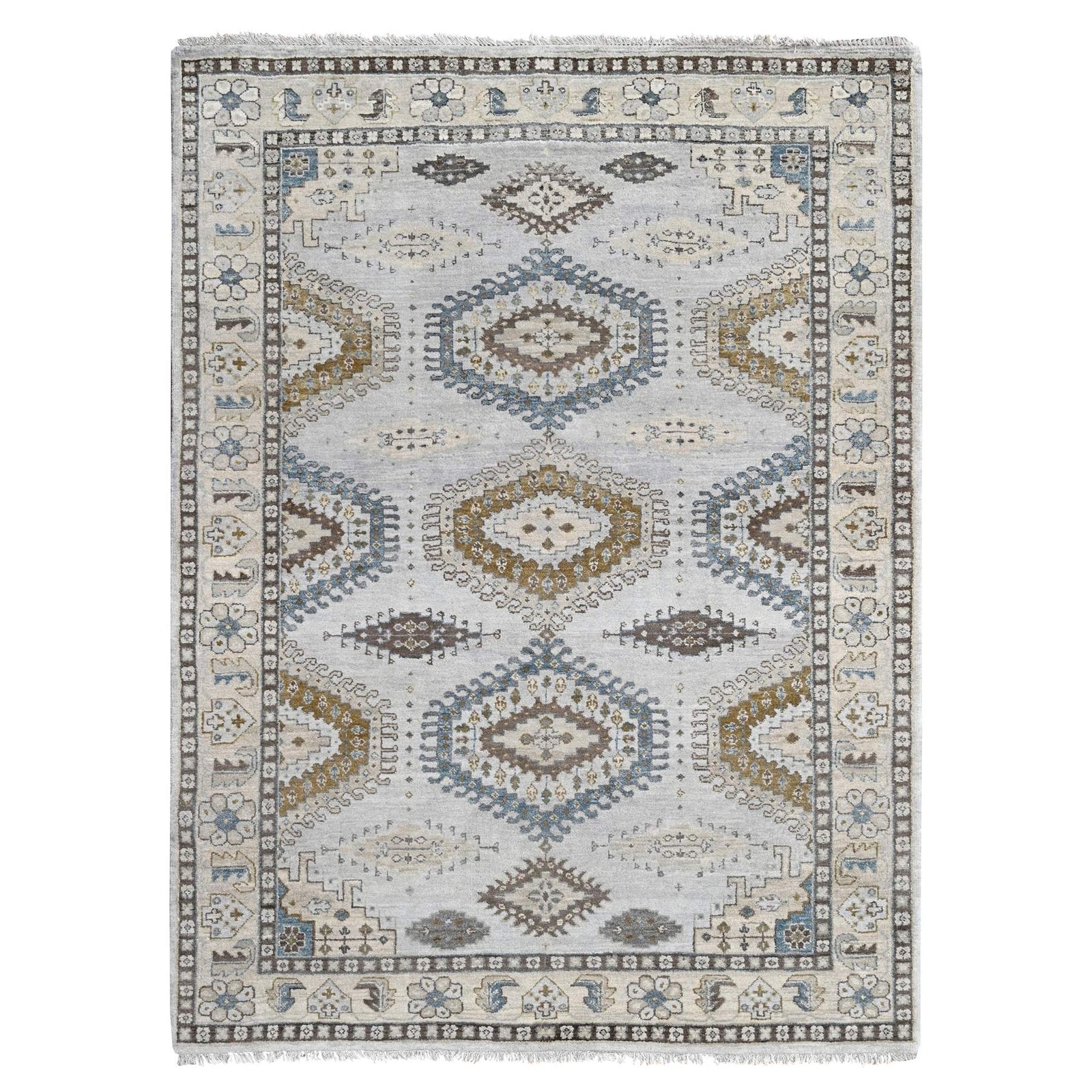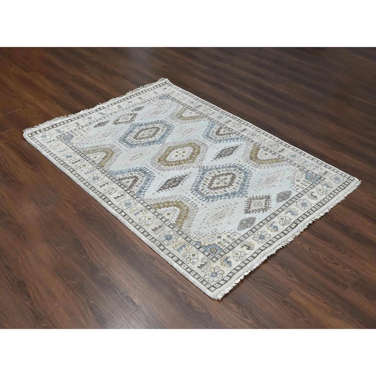 5'1"X6'10" Gray Zoroastrian Village Inspired Pure Wool Hand Knotted Rug