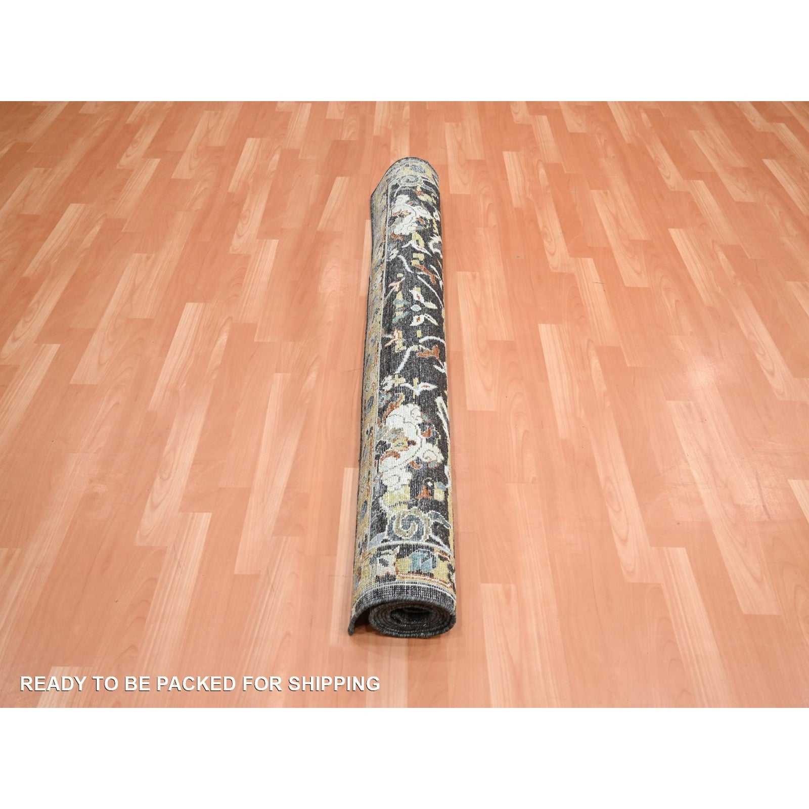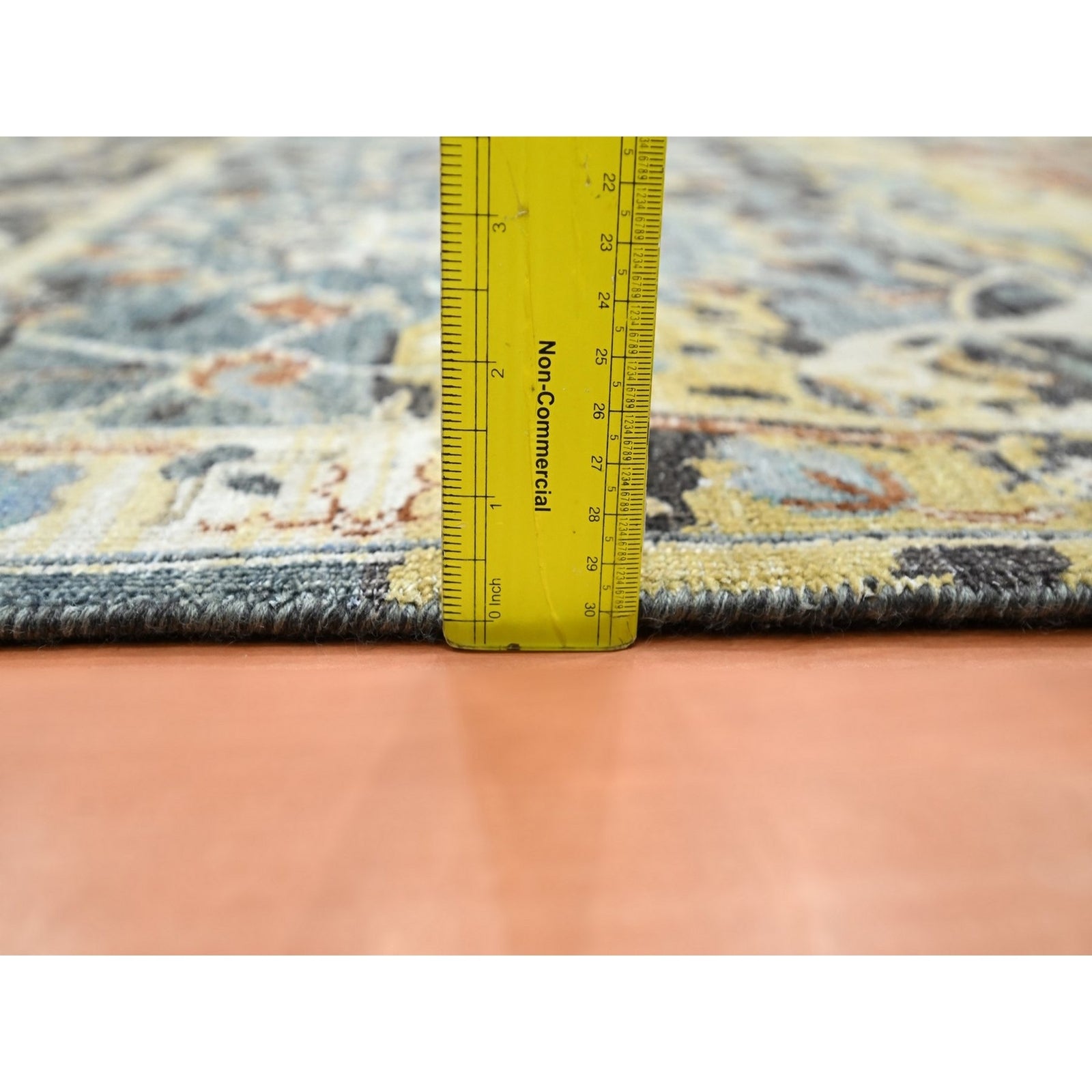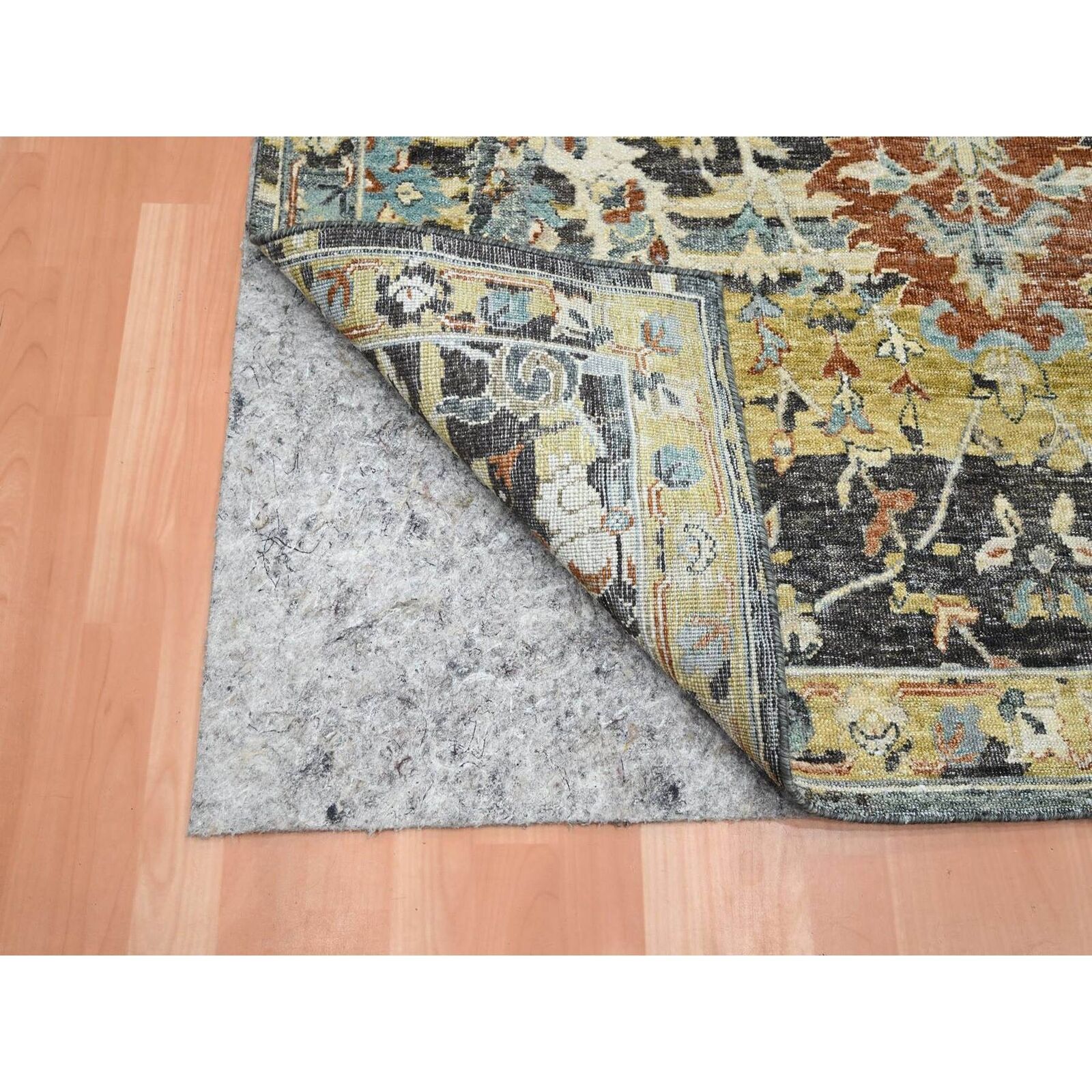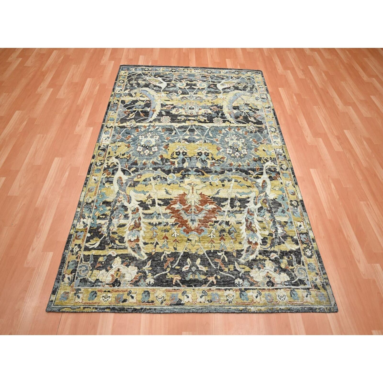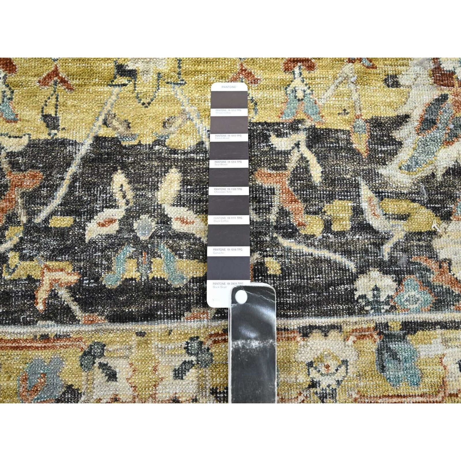 5'1"X7'4" Black With Yellow Zoroastrian Design Pure Wool Hand Knotted Rug