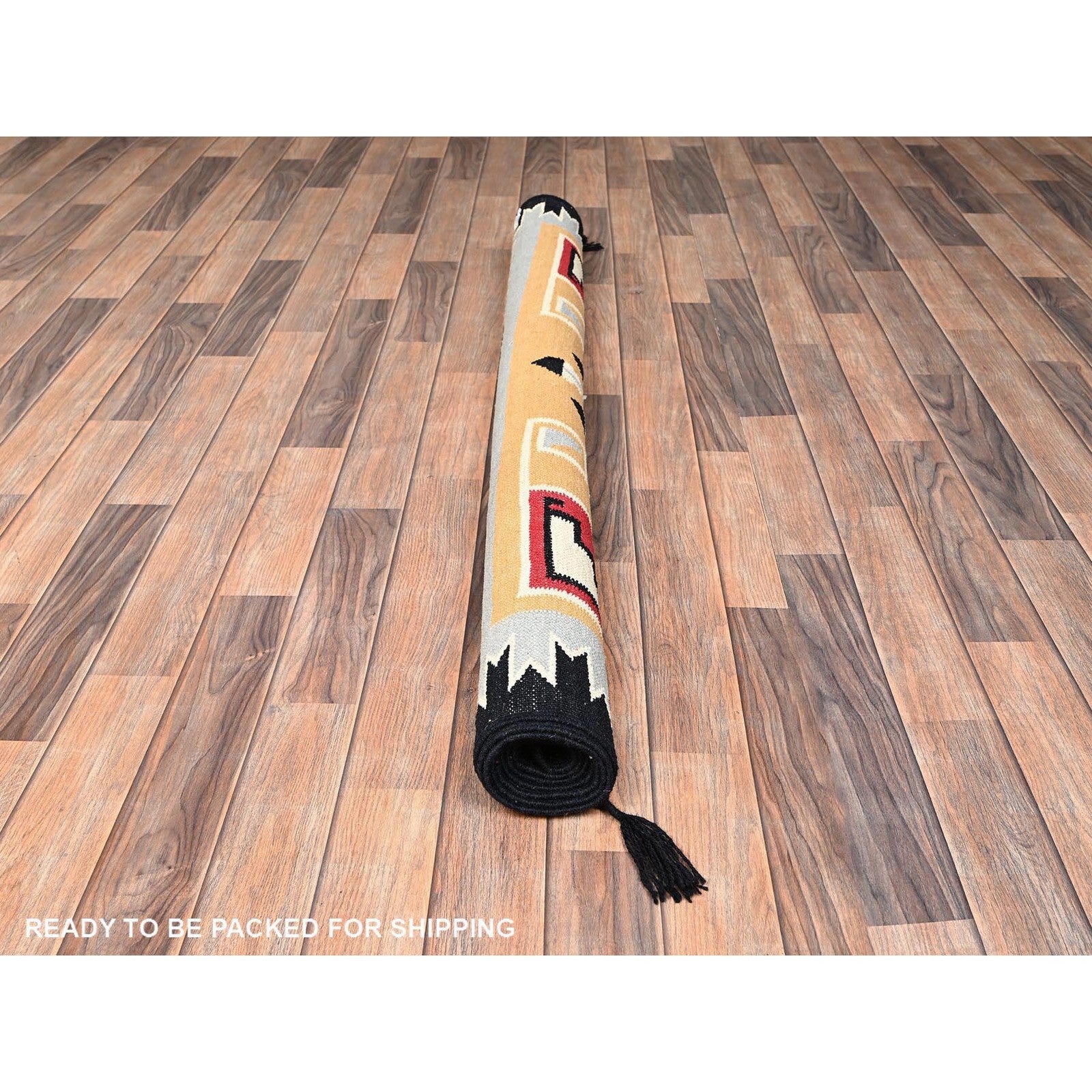5'2"X7' Peach Color American Indian Design Rug Flat Weave Hand Woven Wool