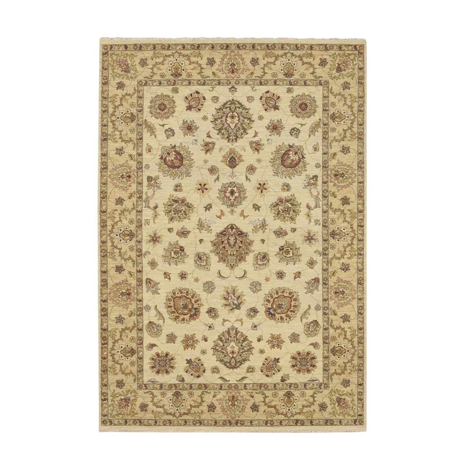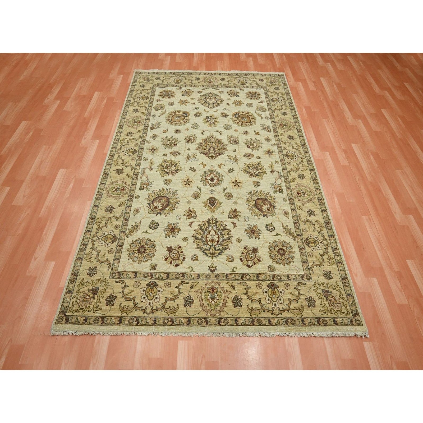 5'6"X8'1" Ivory Pure Wool Agra With Ziegler Design Leaf Pattern Hand Knotted