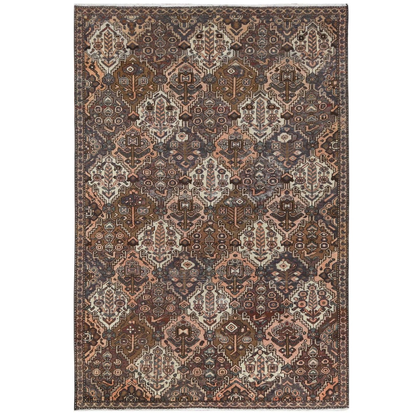 5'7"X8'5" Brown Worn Wool Hand Knotted Vintage Farsian Baktiarjoon Rug