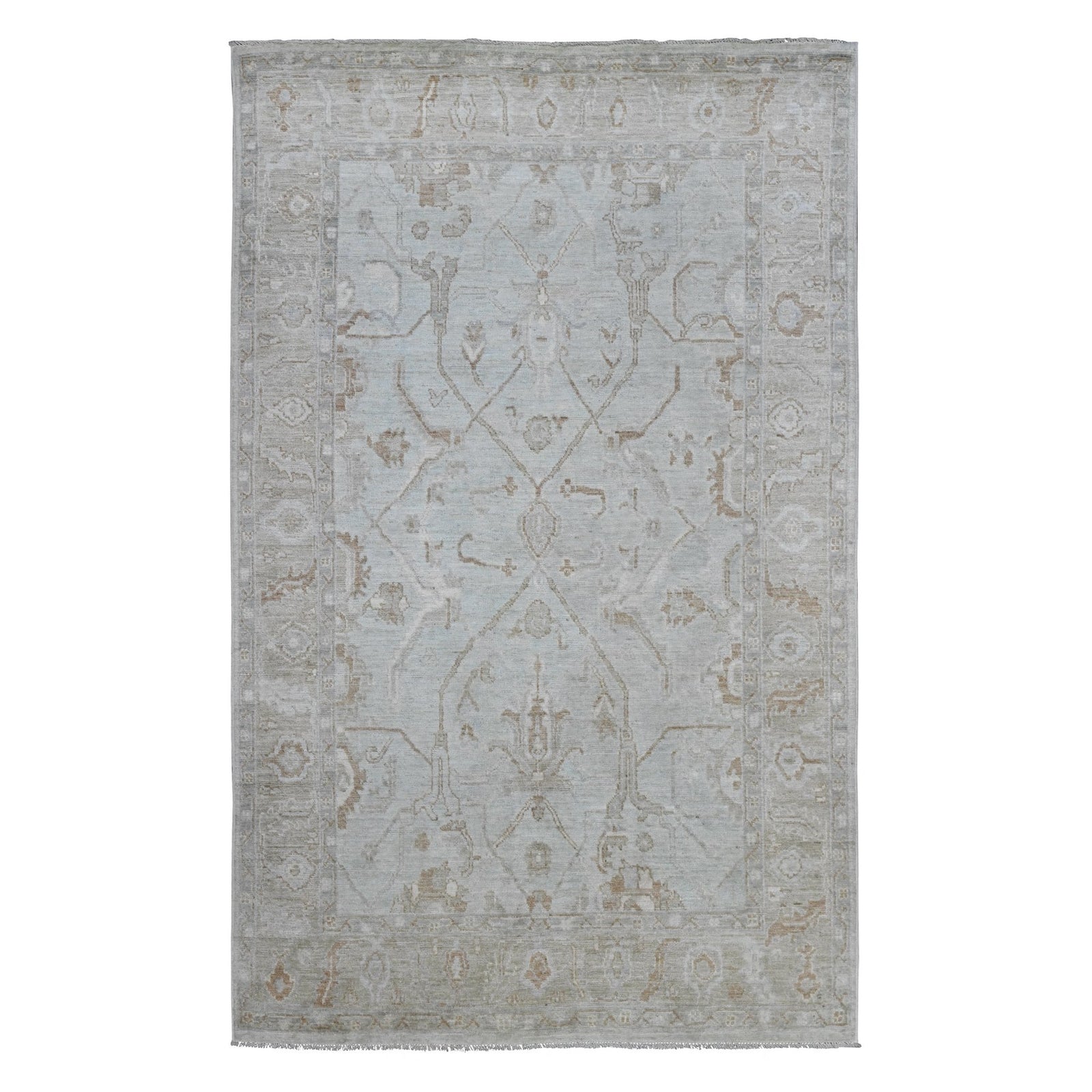 5'8"X9'2" White Afghan Angora Oushak Vines Design Hand Knotted Wool Rug