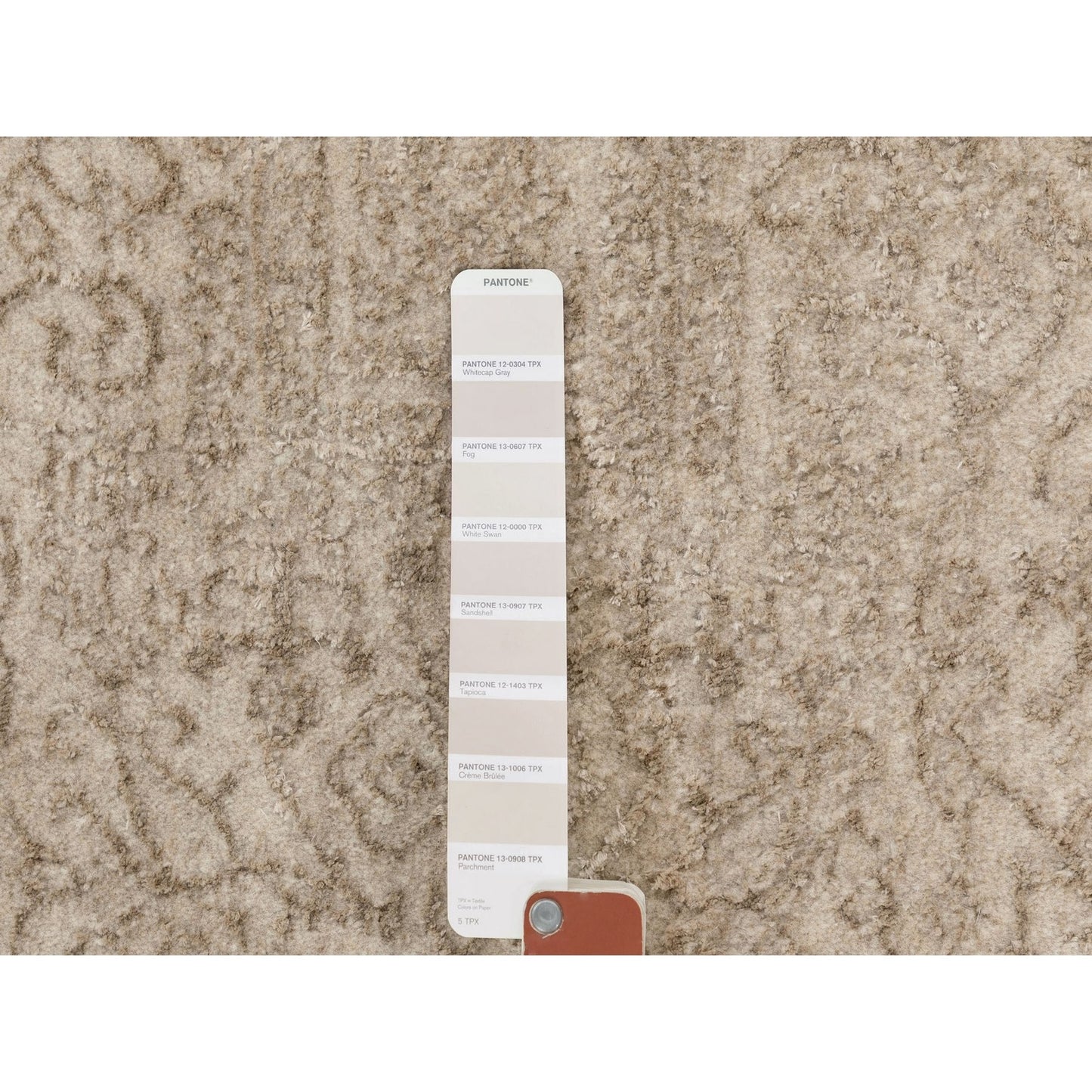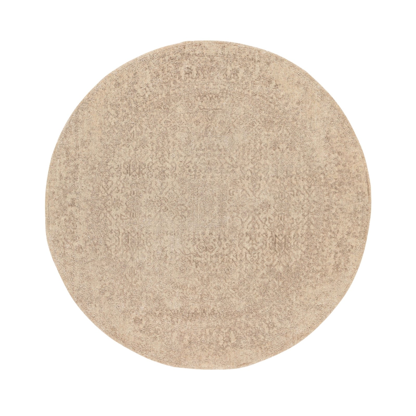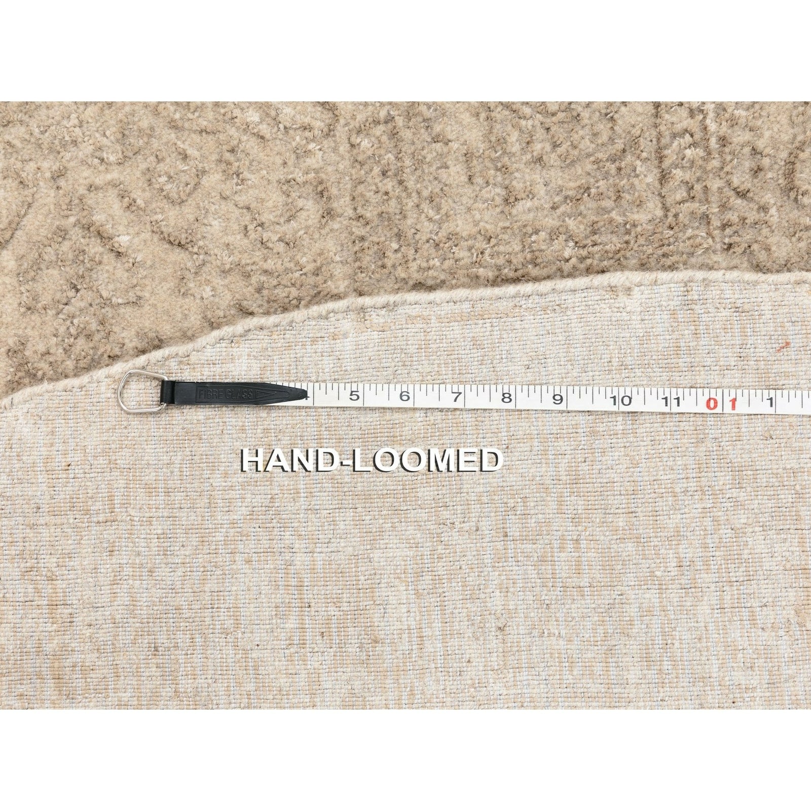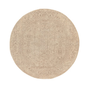 5'9"X5'9" Taupe Fine Jacquard Hand Loomed Round Wool And Art Silk Rug