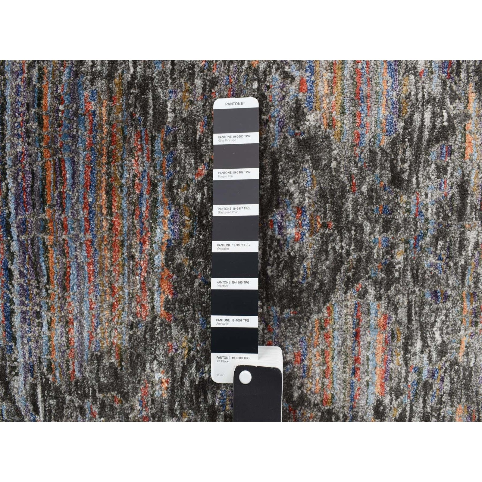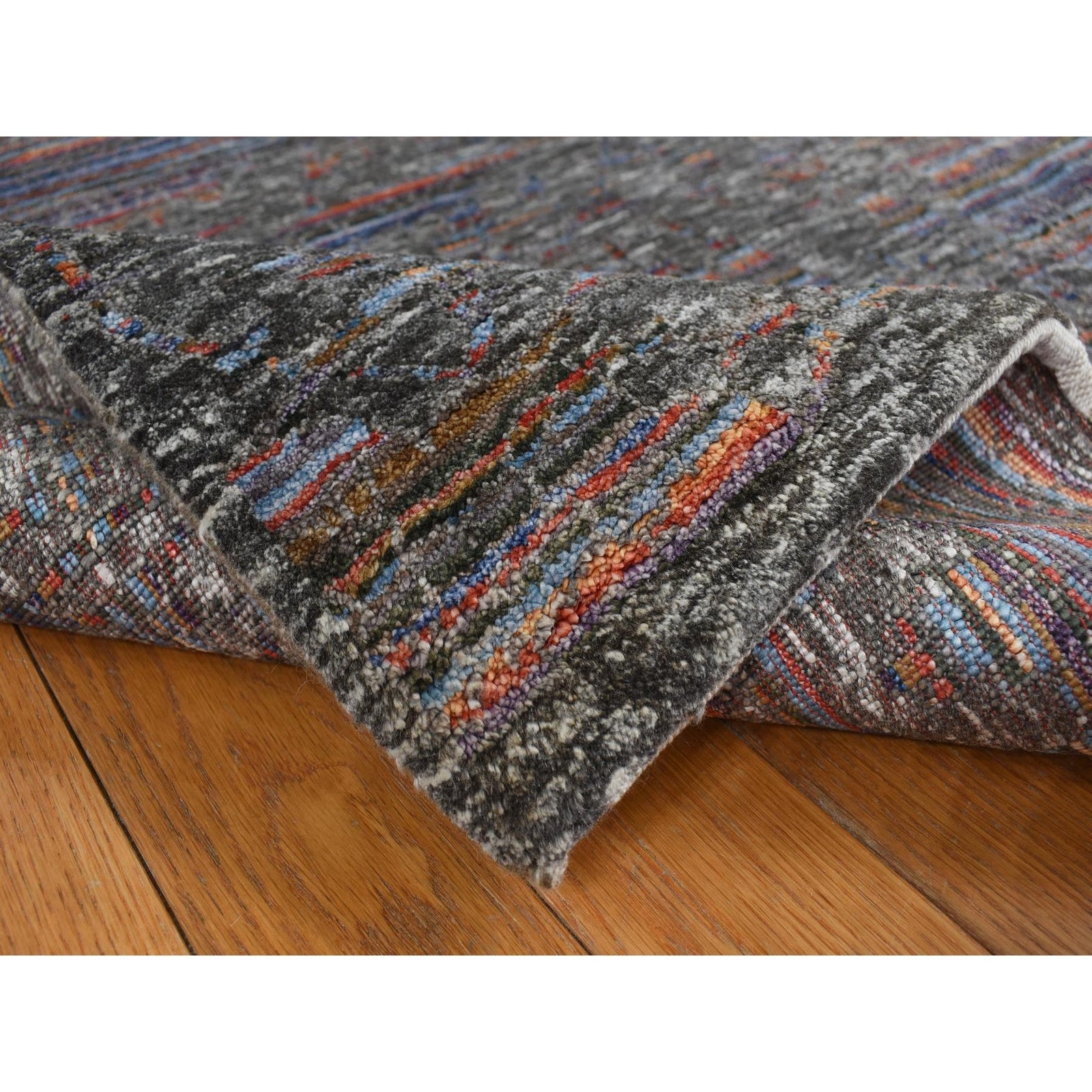 5'9"X7'10" Black Erased Design Handspun Wool And Silk Oriental Rug