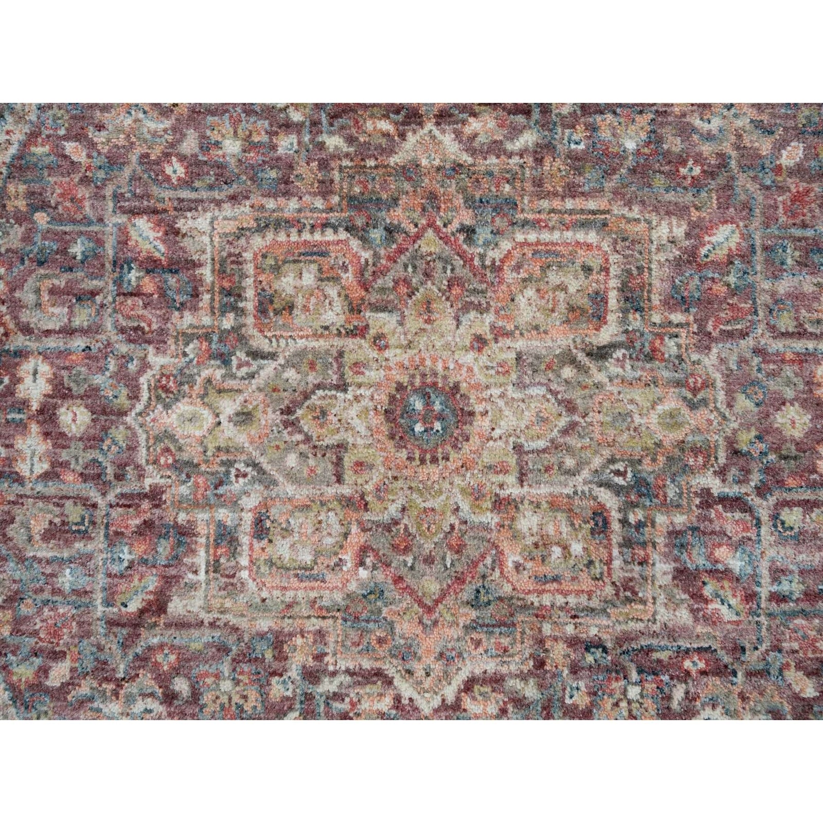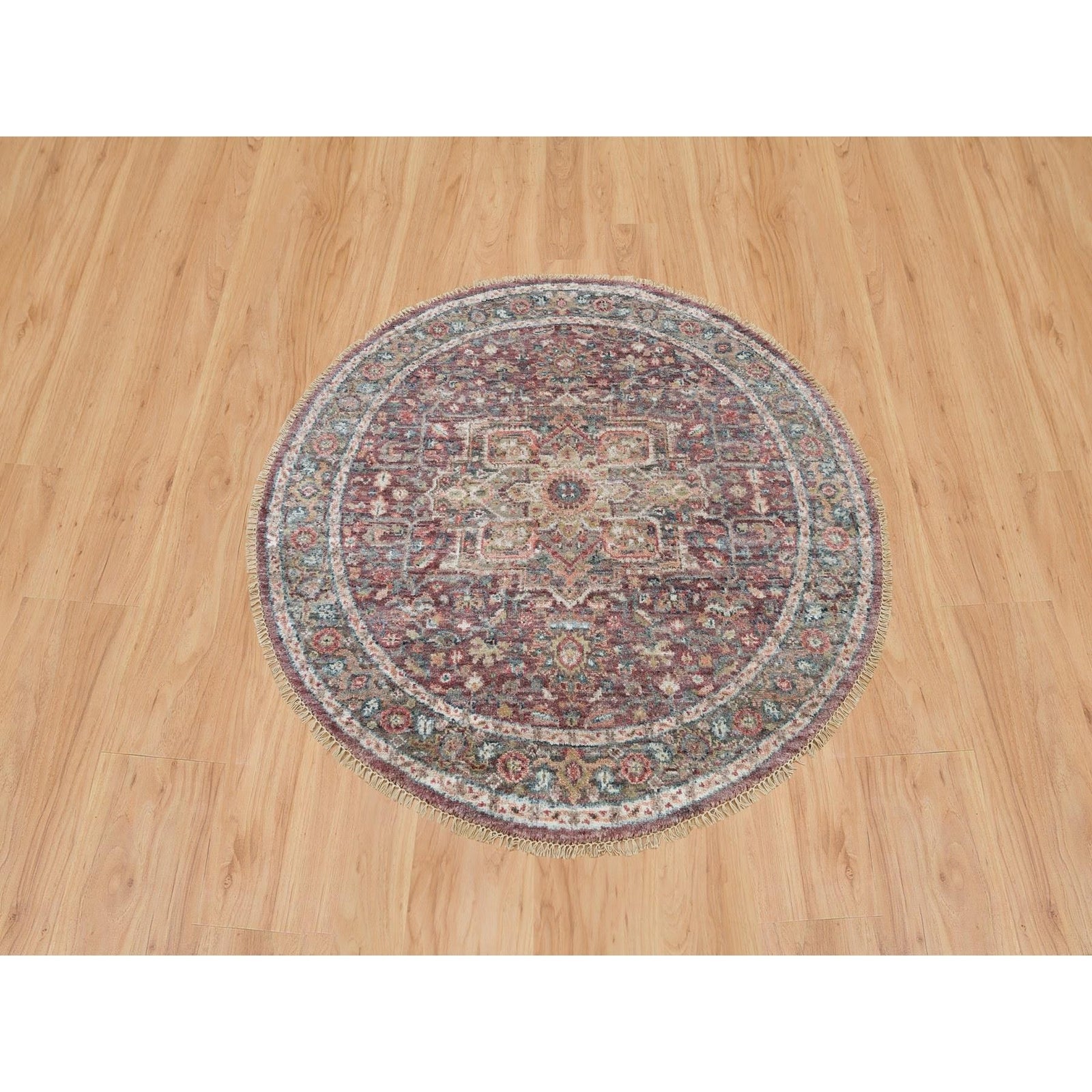 5'X5' Garnet Red Heriz Revival Pure Wool Hand Knotted Round Oriental Rug