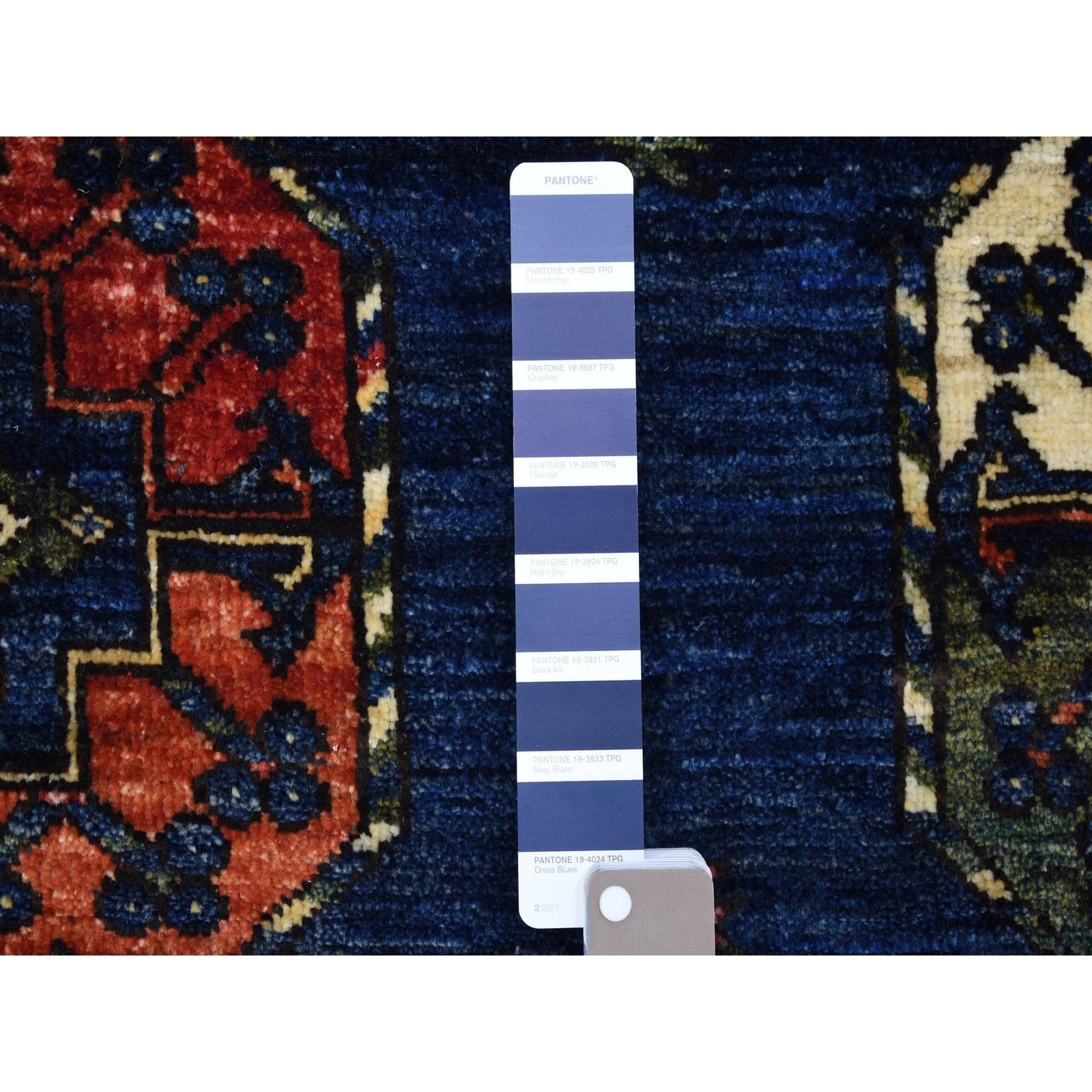 5'X6'10" Afghan Ersari Elephant Feet Design Organic Blue Hand Knotted Rug