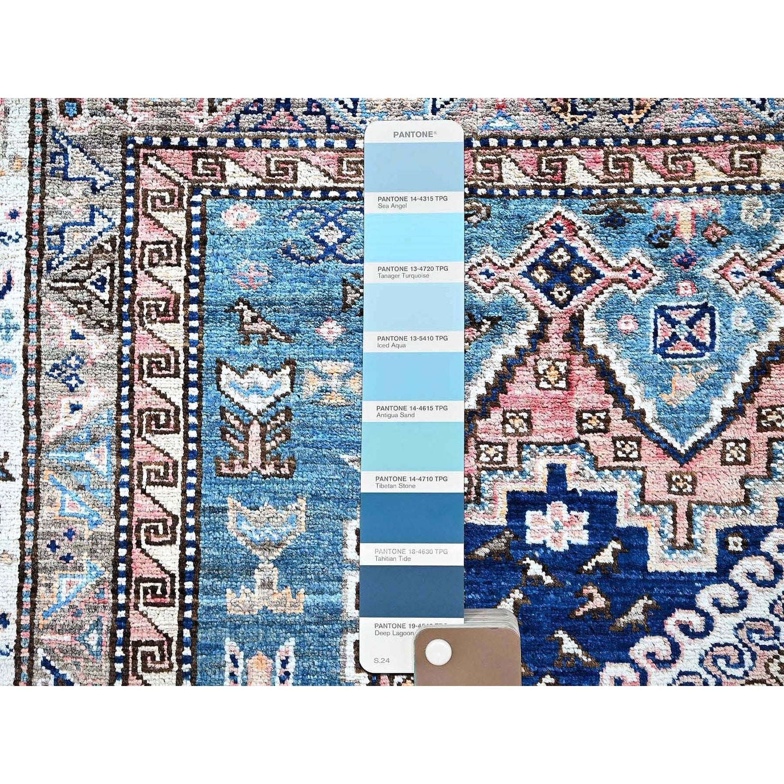 5'X6'3" Pink Afghan Caucasian Design Revival Hand Knotted Soft Wool Rug