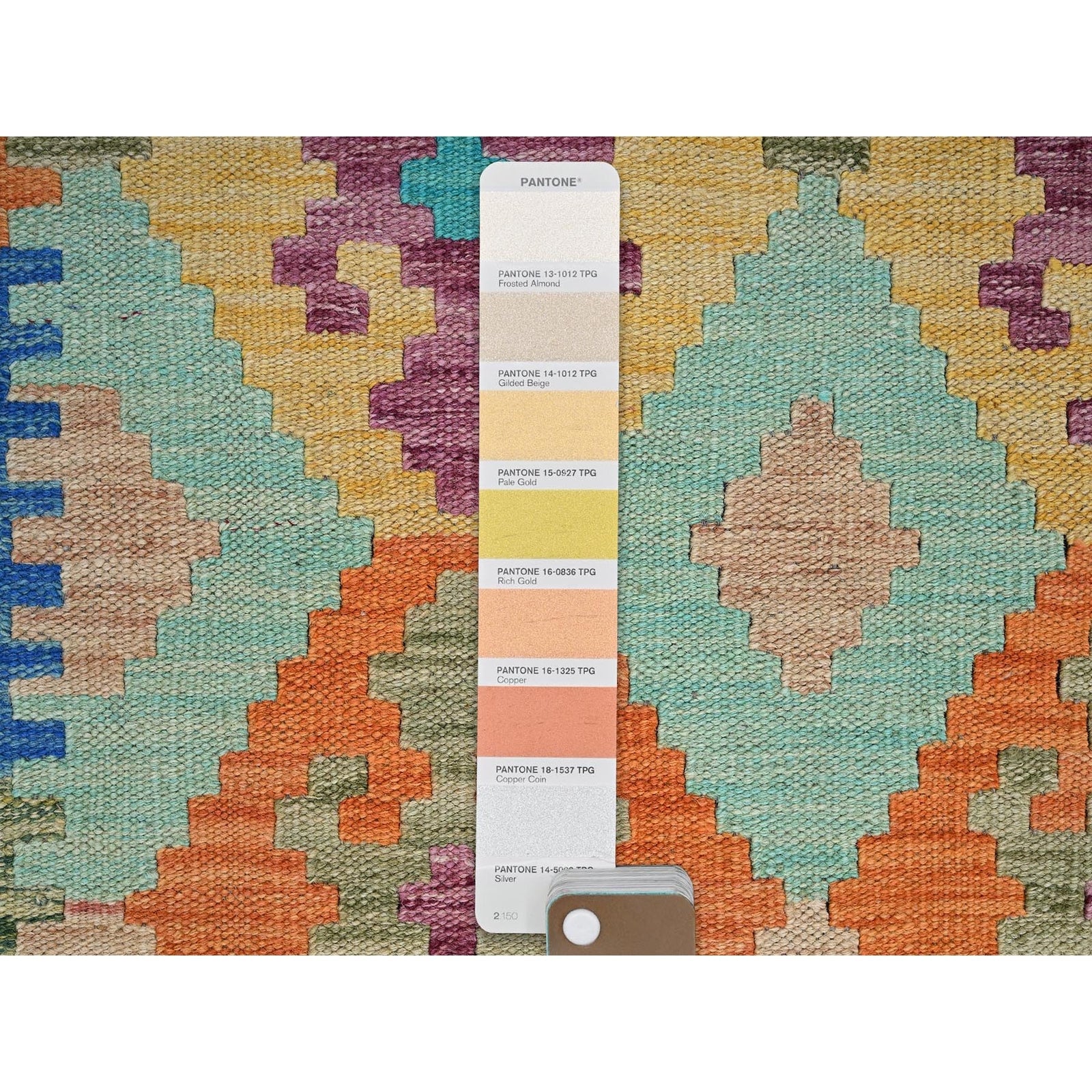 5'X6'4" Blue Afghan Kilim Geometric Pure Wool Hand Woven Flat Weave Rug