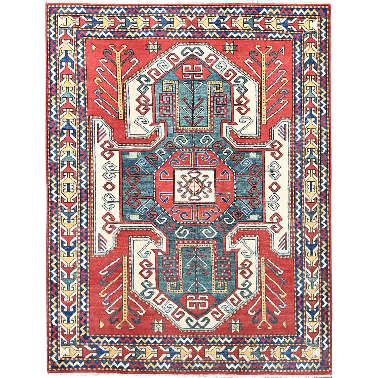 5'X6'6" Pepperoni Red Wool Antiqued Caucasian Swan Kazak Hand Knotted Rug