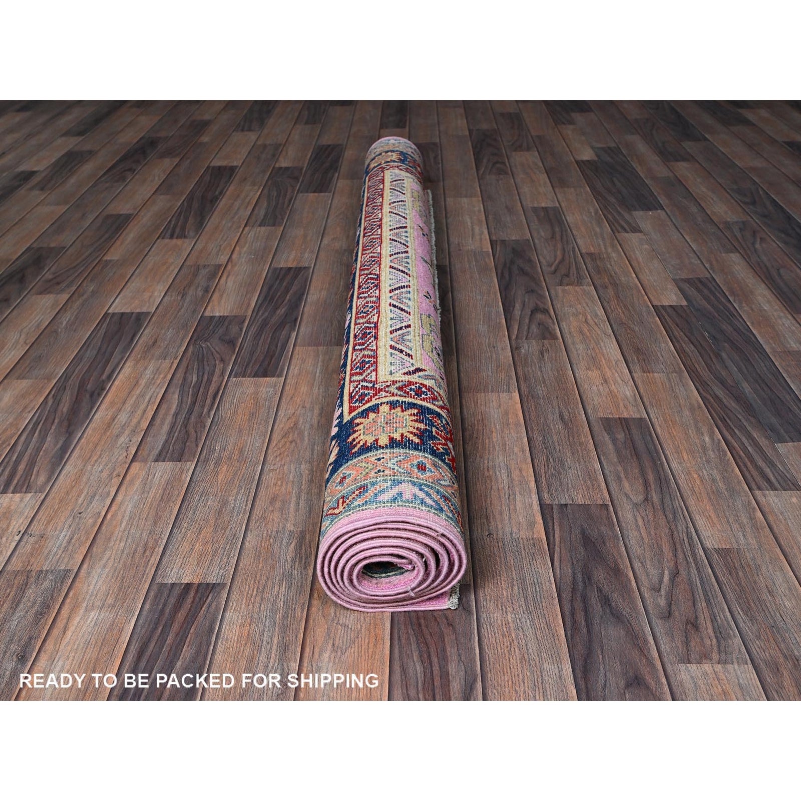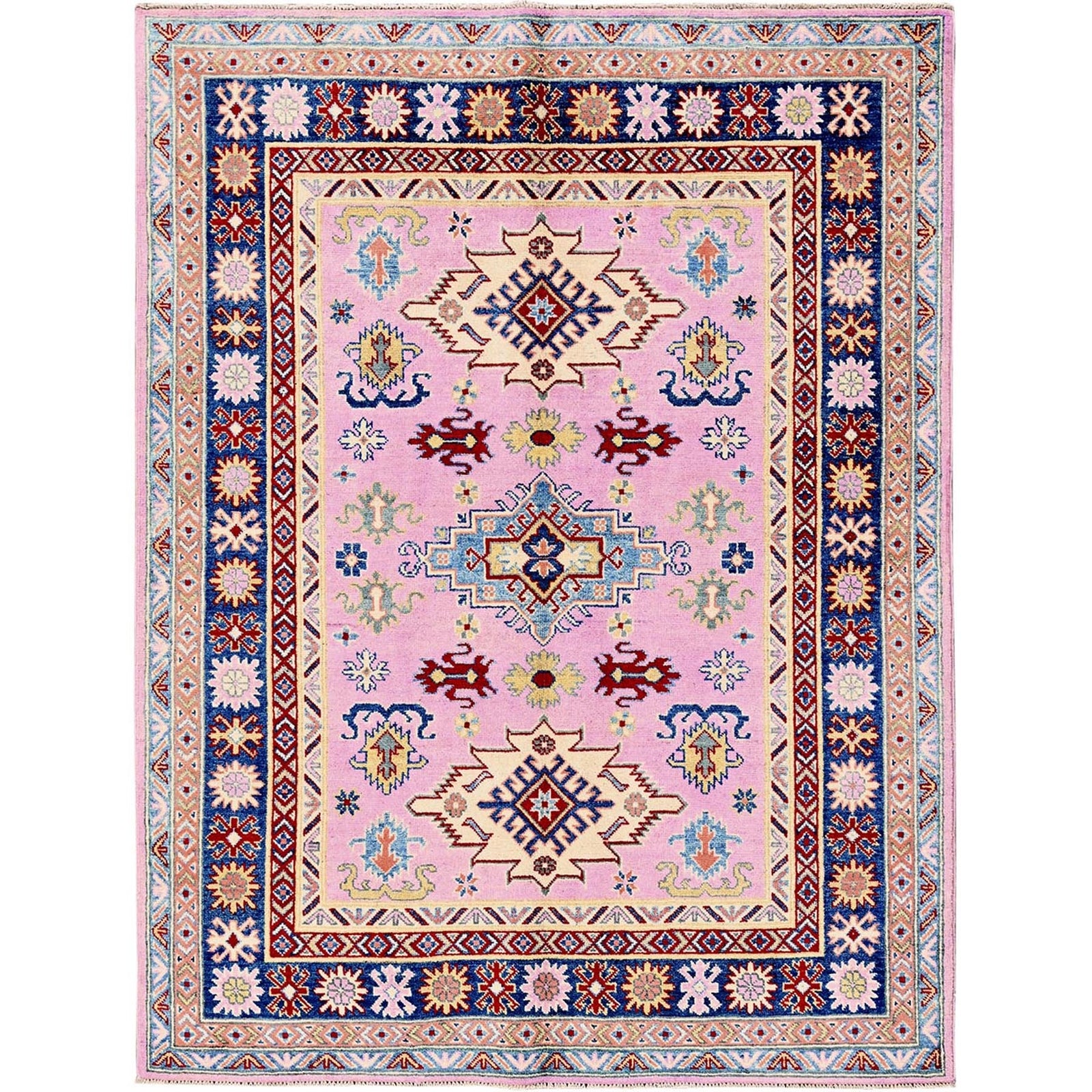 5'X6'7" Aurora Pink Kazak With Geometric Design Hand Knotted Pure Wool Rug
