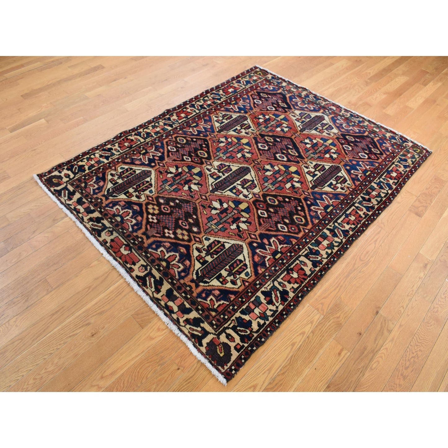 5'X6'9" Red Vintage Zoroastrian Baktiarjoon Design Hand Knotted Rug