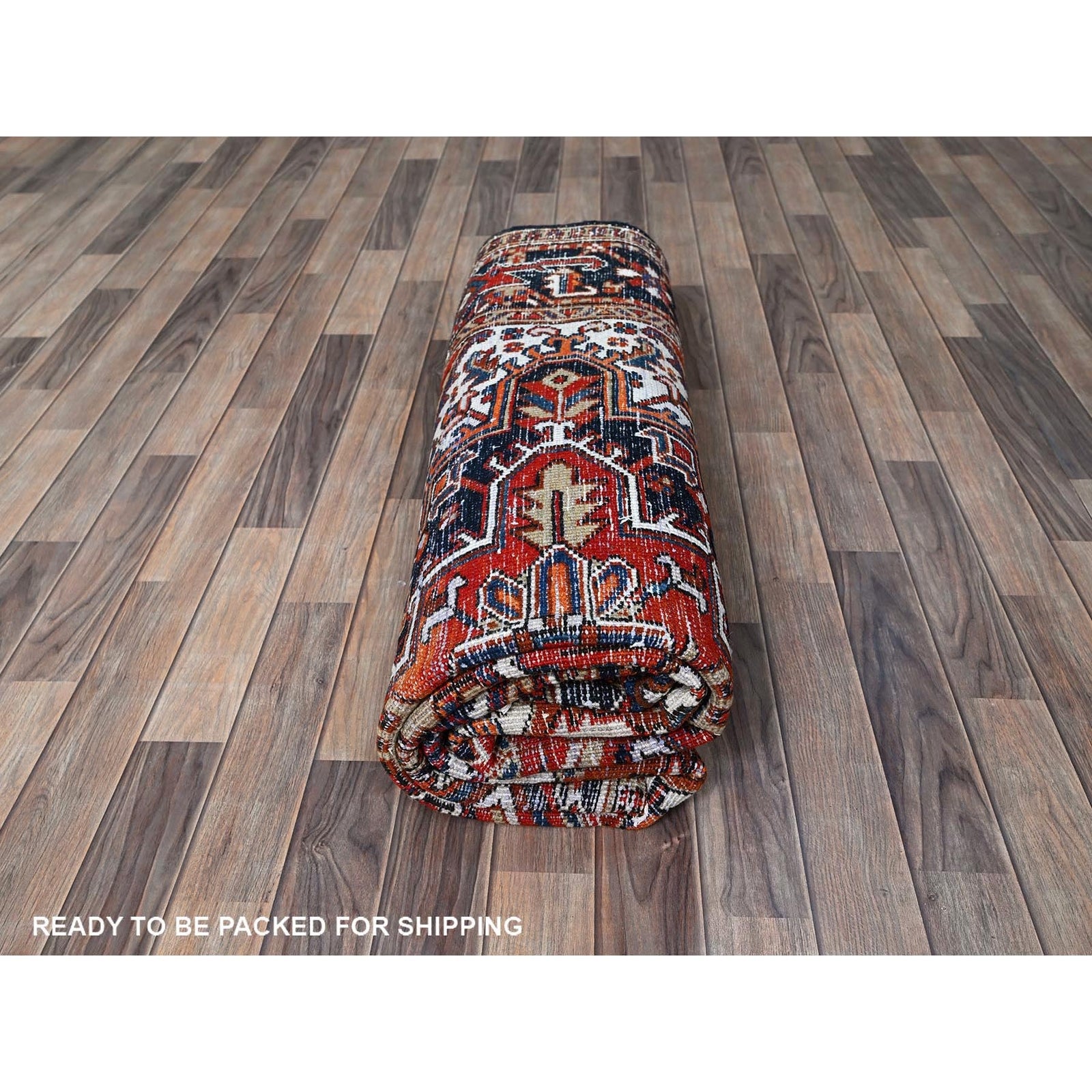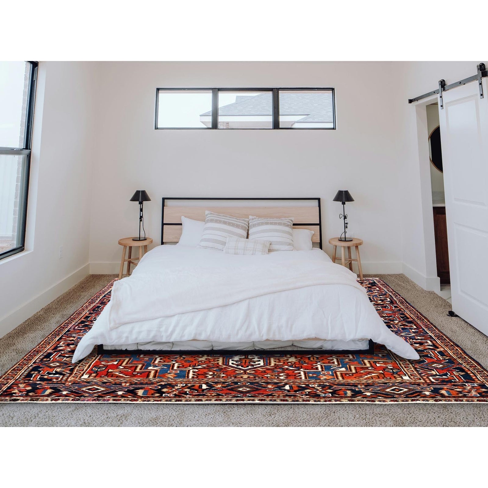 6'10"X8'10" Chili Red Vintage Zoroastrian Heris Pure Wool Hand Knotted Rug