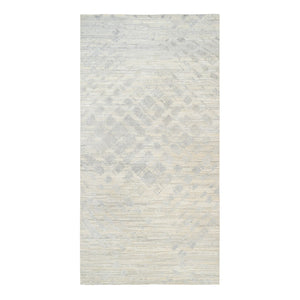 6'1"X11'10" Natural Wool Hand Knotted Ivory Modern Design Wide Runner Rug