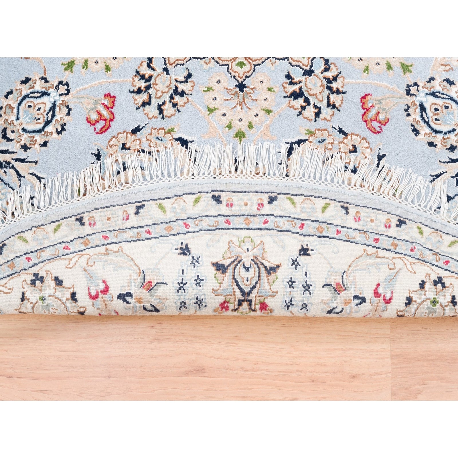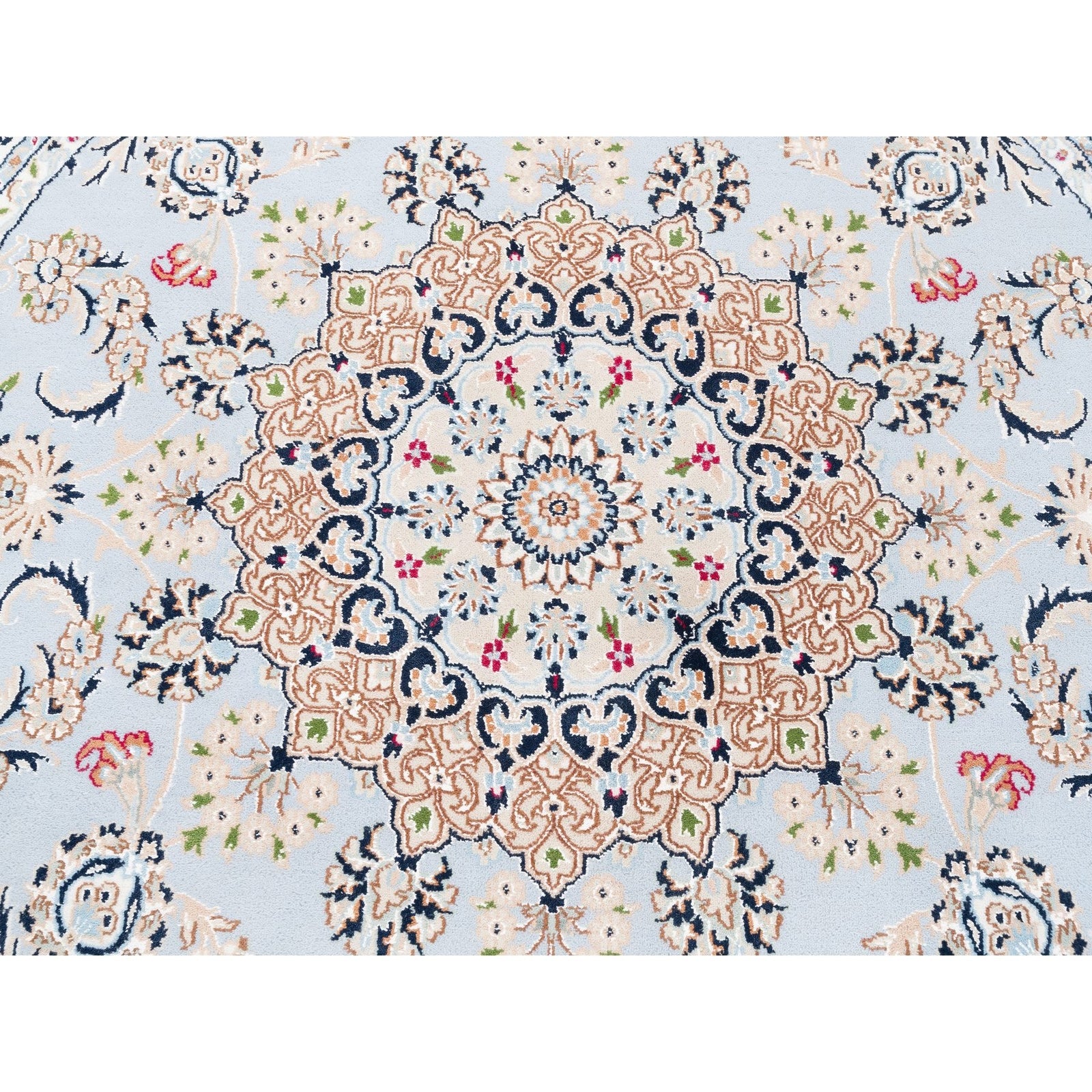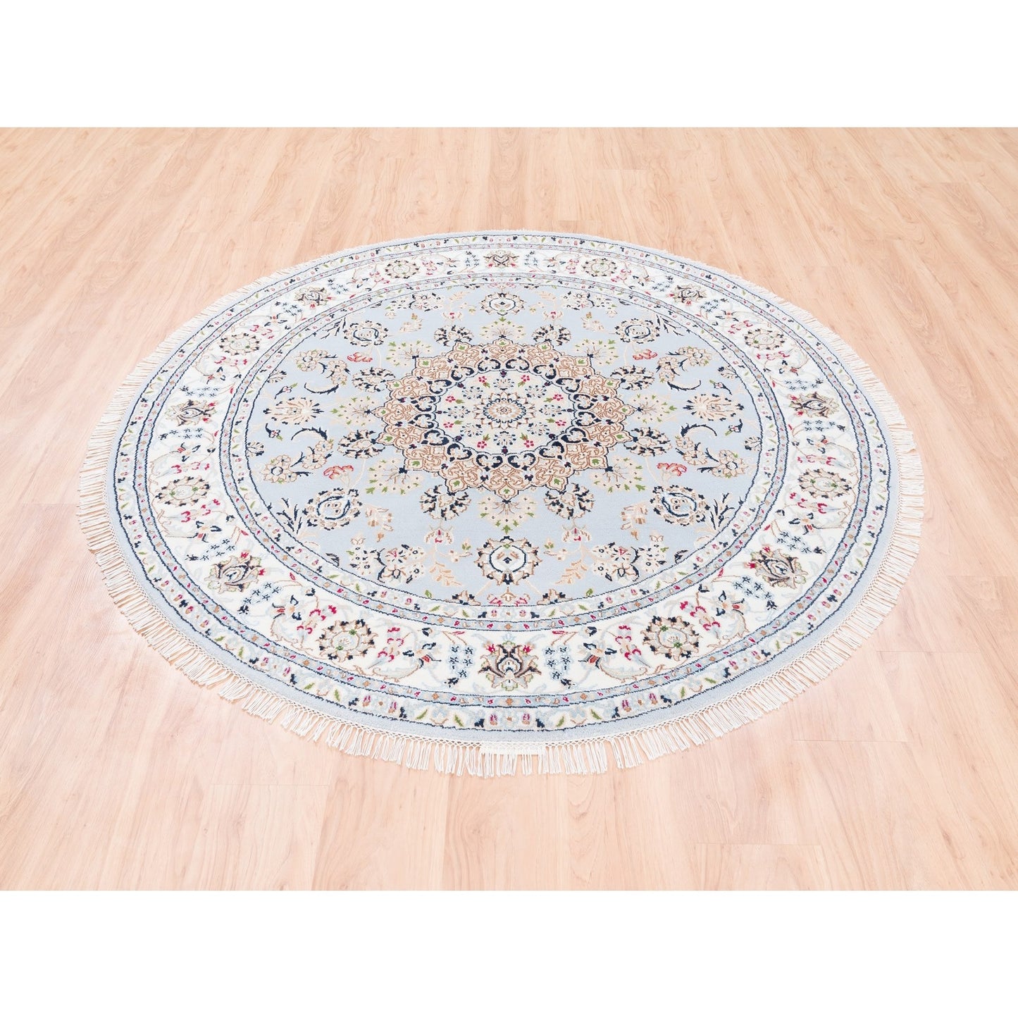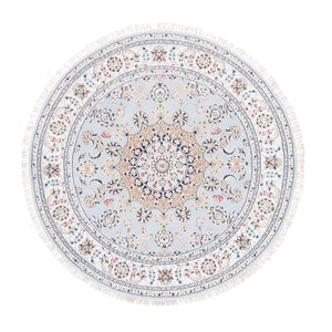 6'1"X6'1" Blue Round Wool 250 Kpsi Nain Handmade Medallion Design Rug