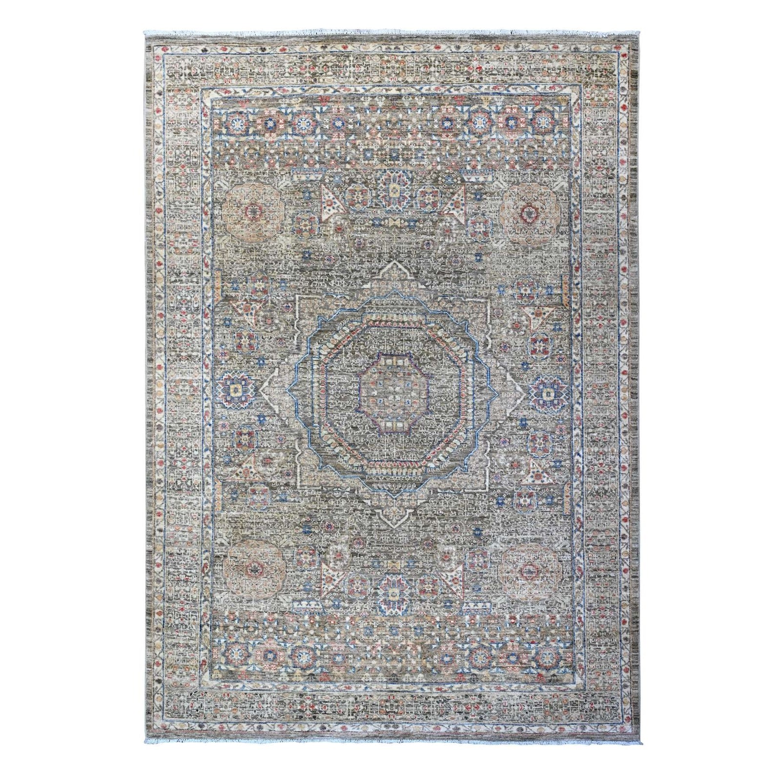 6'1"X8'10" Nickel Gray Pre Historic Mamluk Hand Knotted Wool Oriental Rug