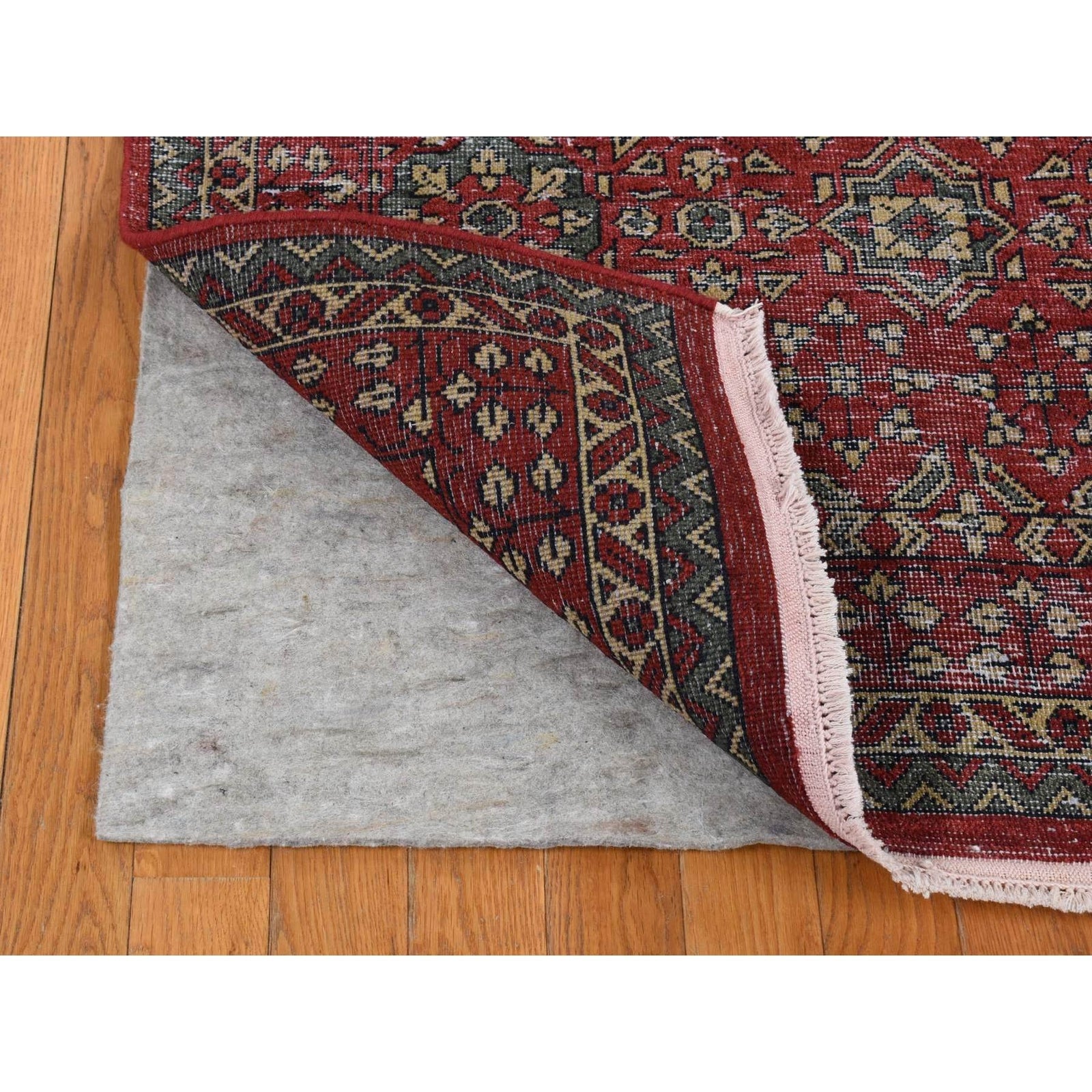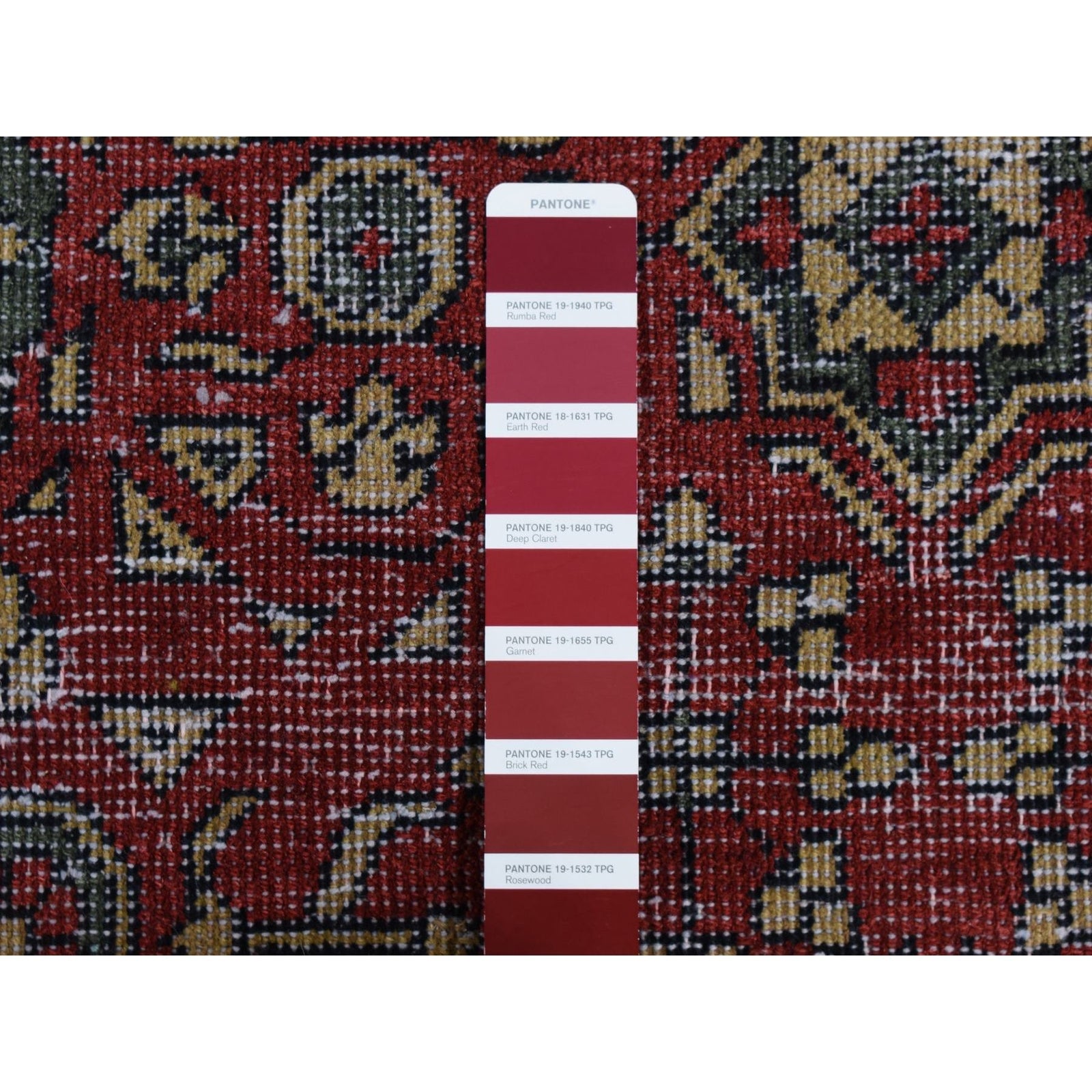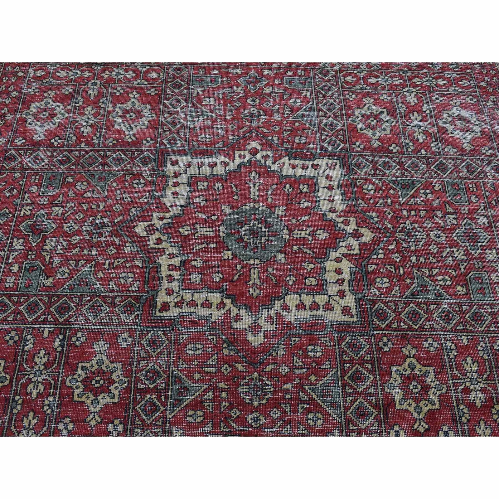 6'1"X9' Vermilion Red, Vintage Look Mamluk, Worn Wool Hand Knotted Rug