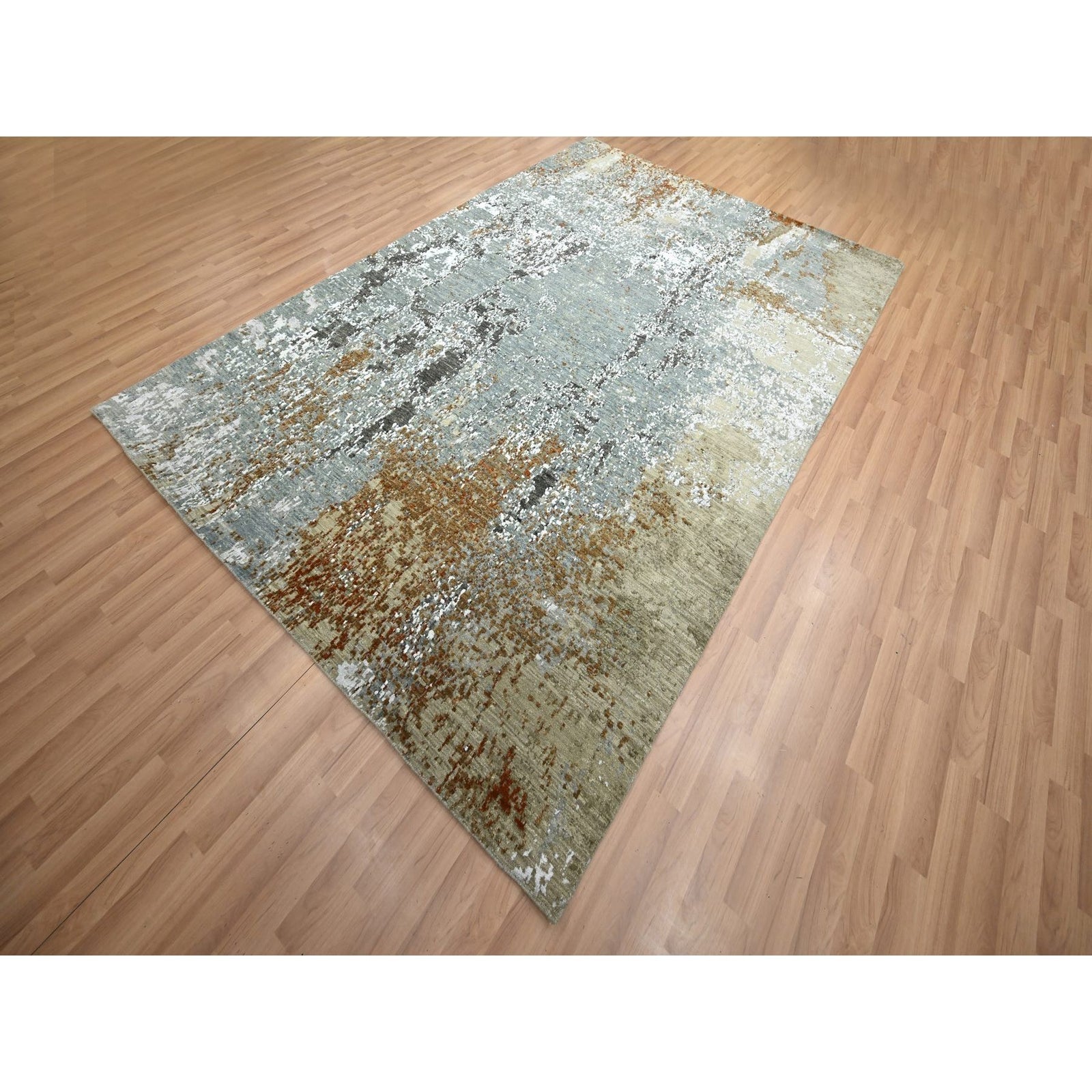 6'1"X9'1" Gray-Brown Abstract Design Pure Wool Hand Knotted Oriental Rug