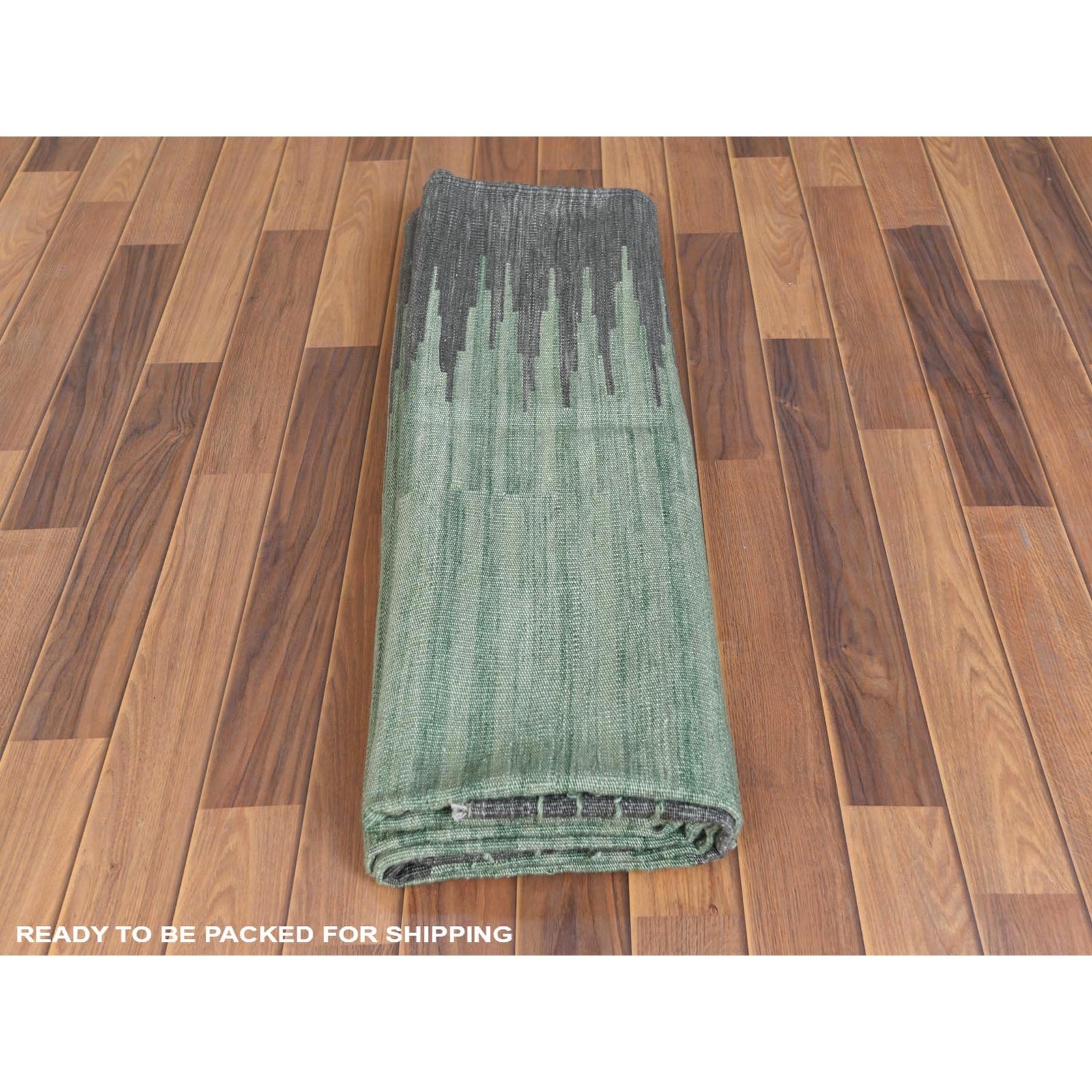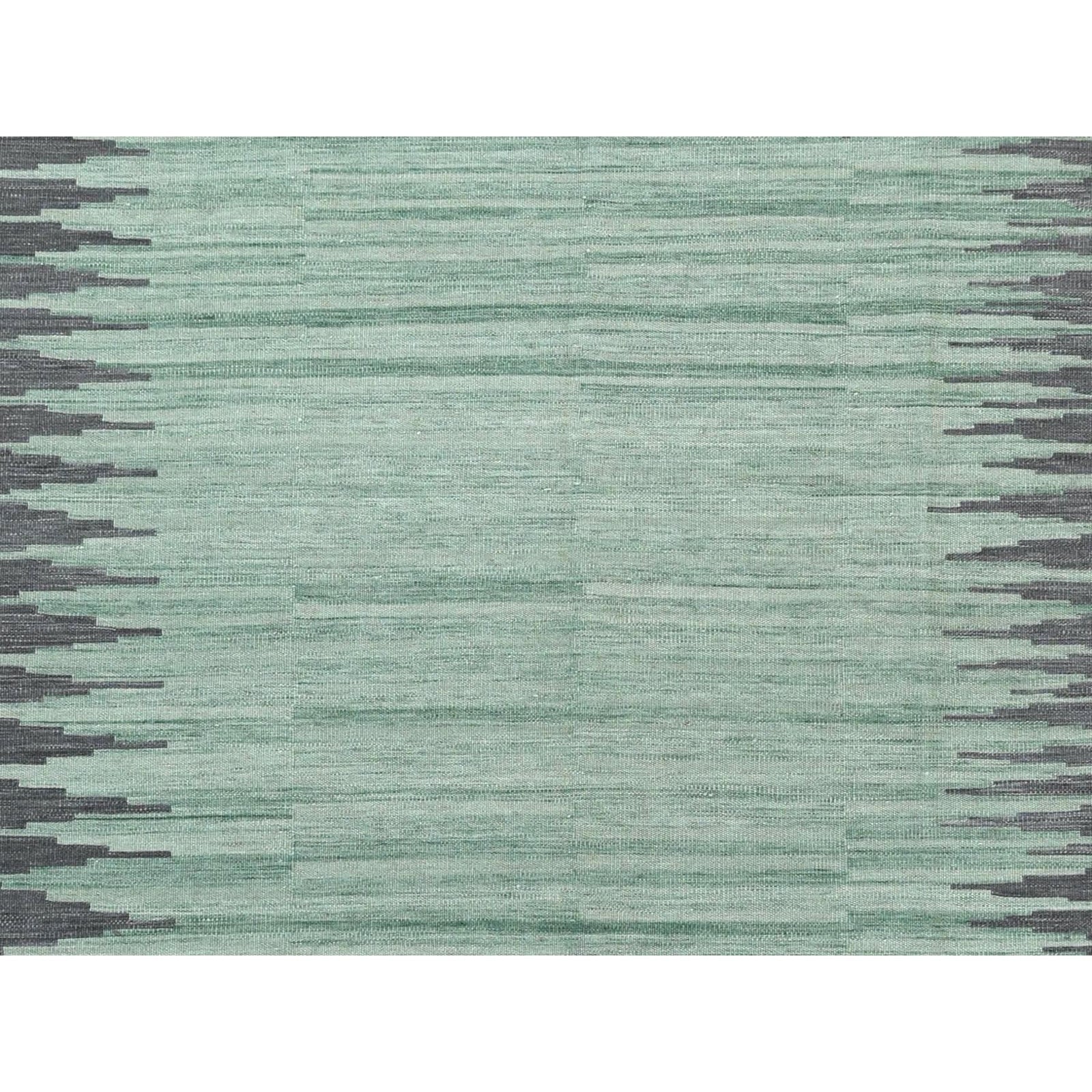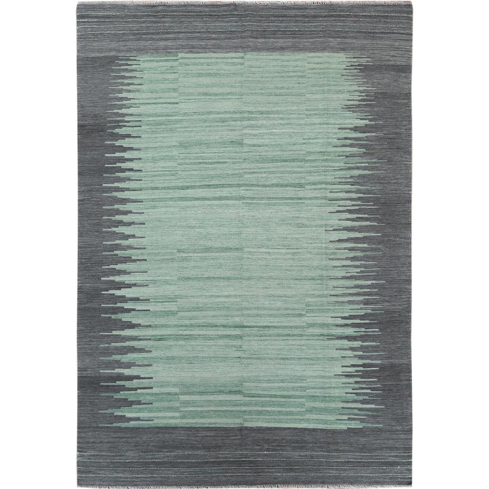 6'1"X9'1" Light Green Flat Weave Kilim Hand Woven Wool Reversible Rug