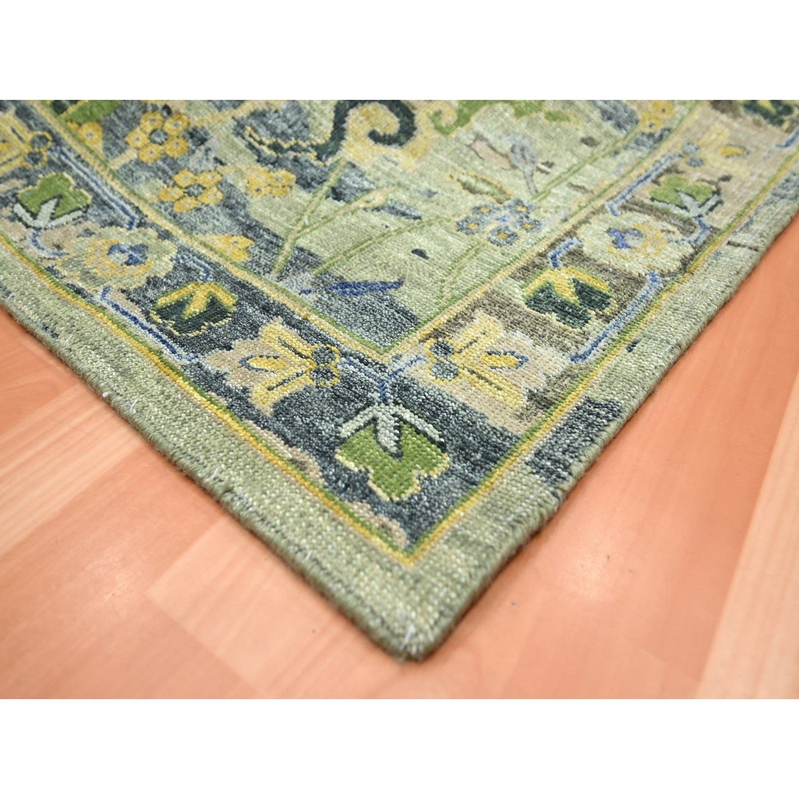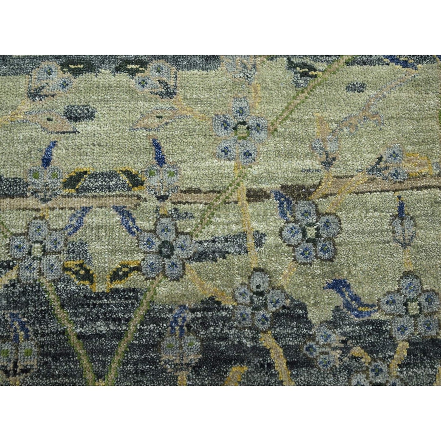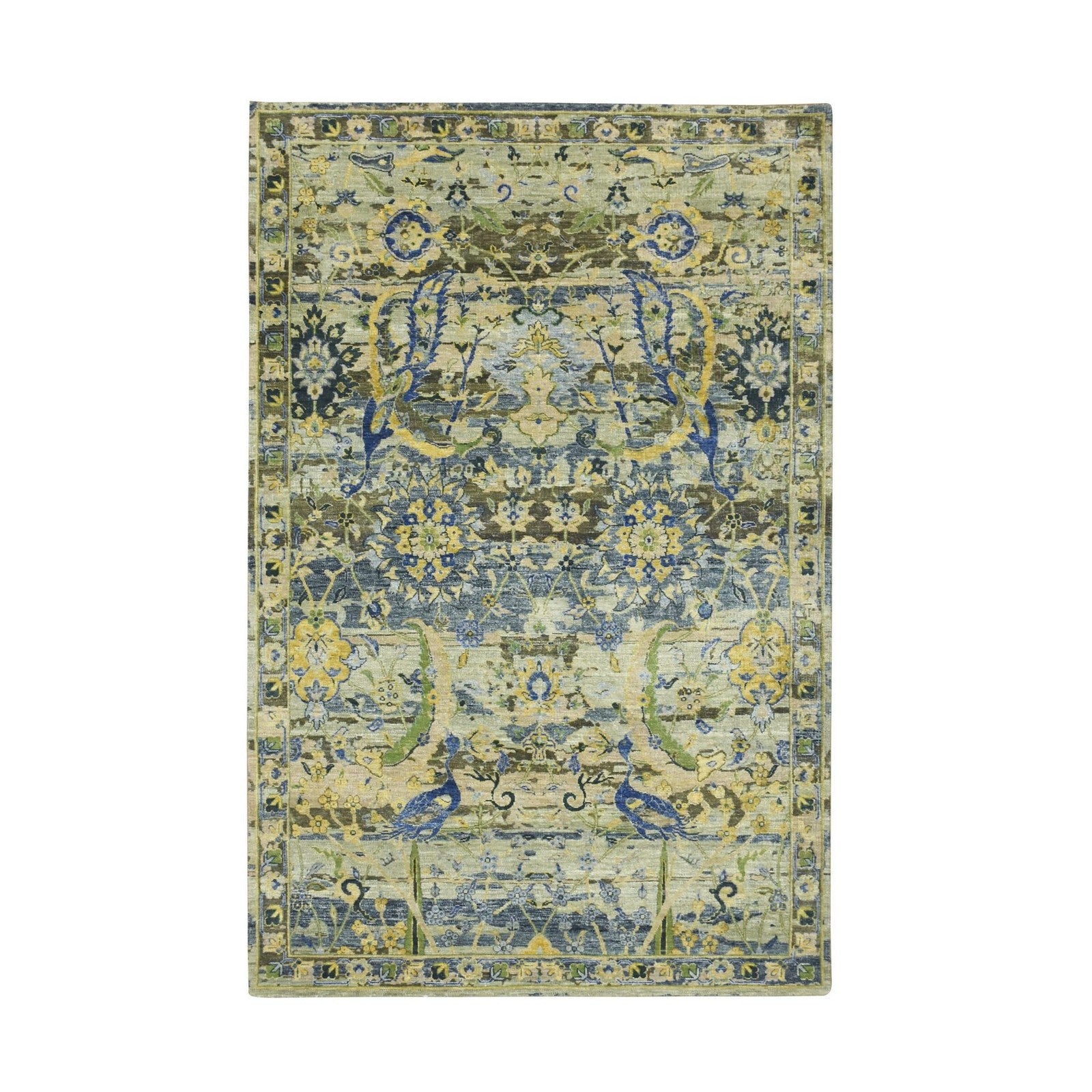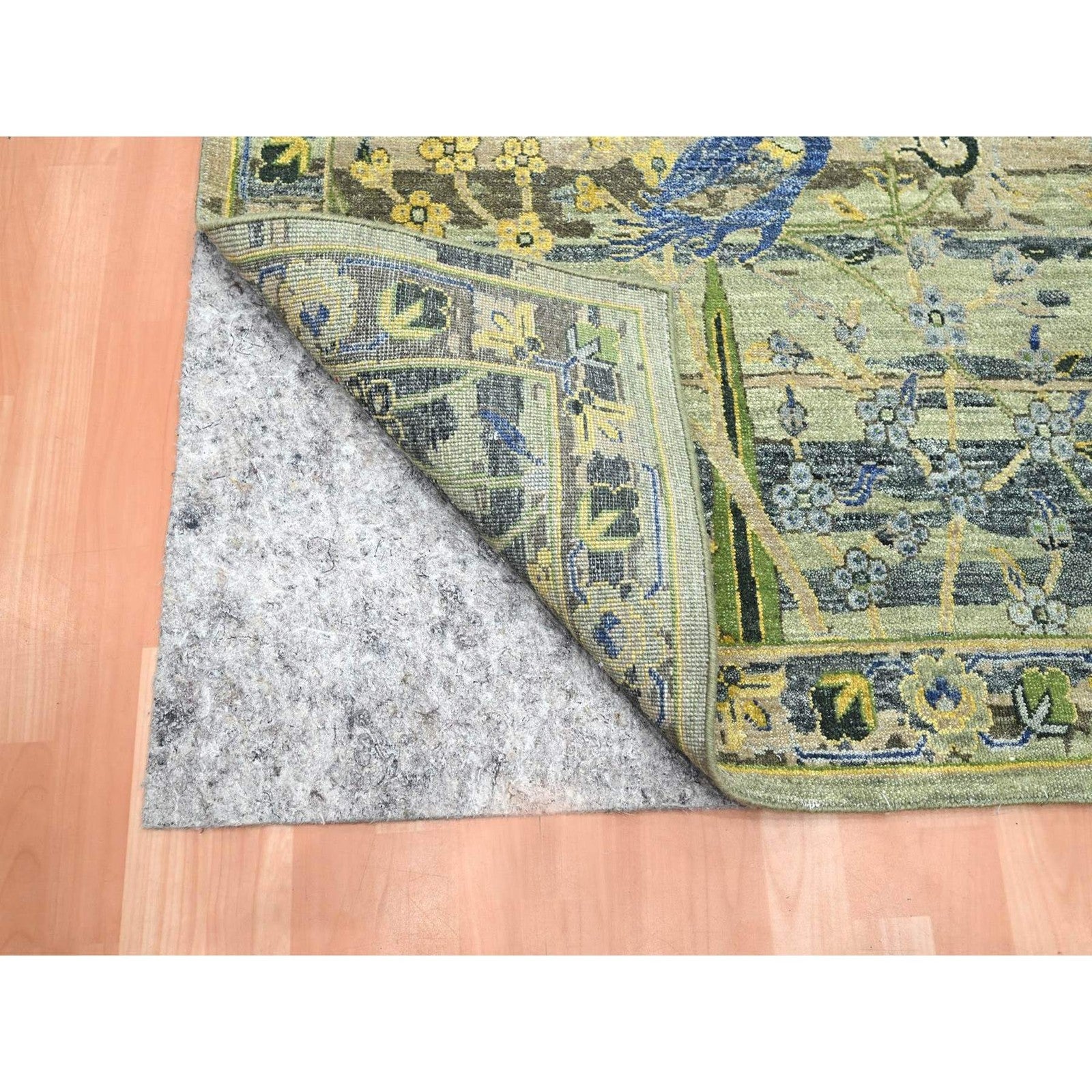 6'1"X9'3" Green Broken And Erased Birds Design Hand Knotted Pure Wool Rug