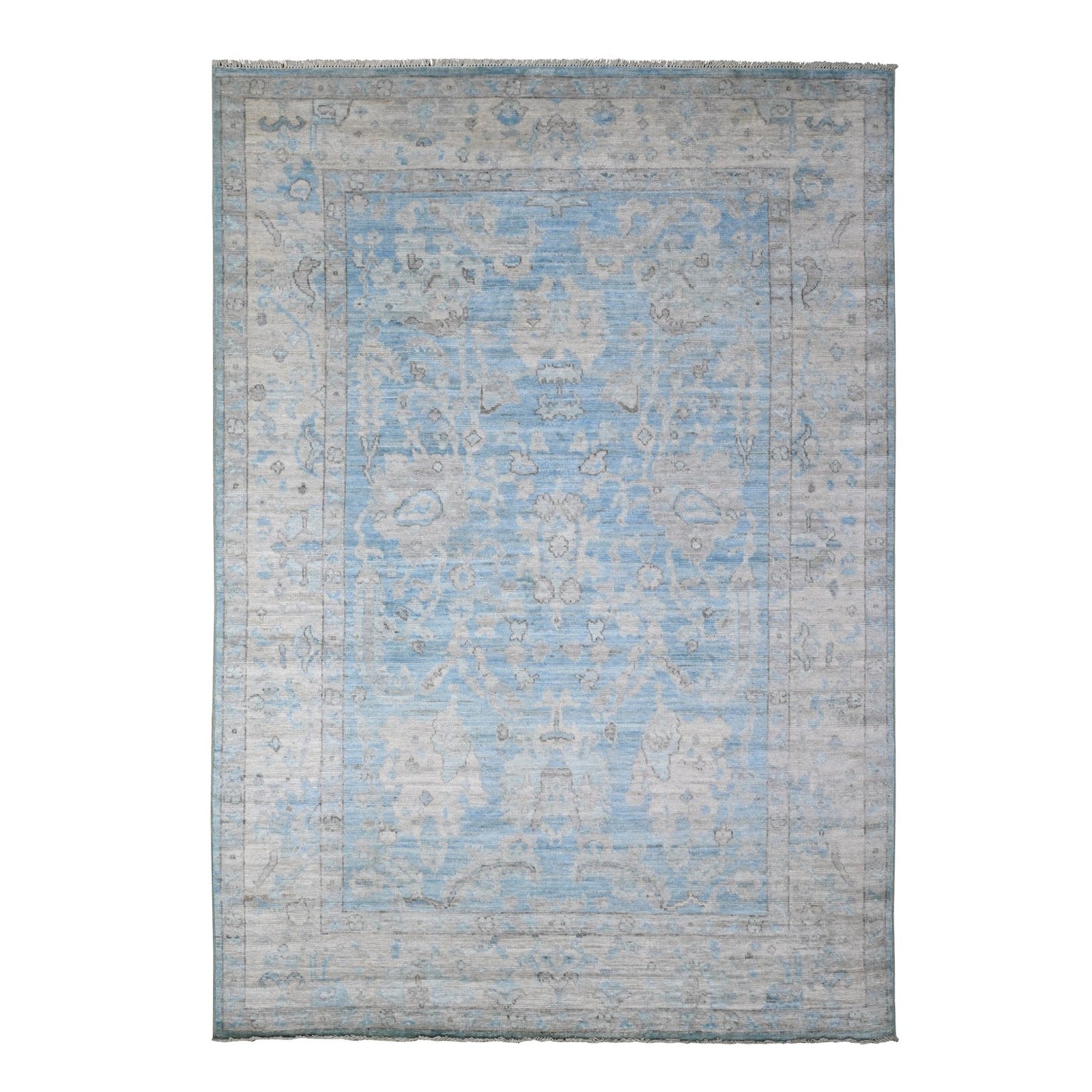 6'2"X8'10" Argentina Blue Natural Dyes Angora Oushak Oriental Rug