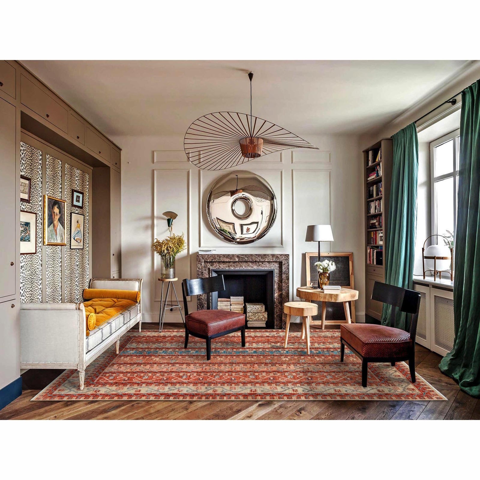 6'2"X8'8" Colorful Super Kazak With Shawl Design Hand Knotted Wool Rug