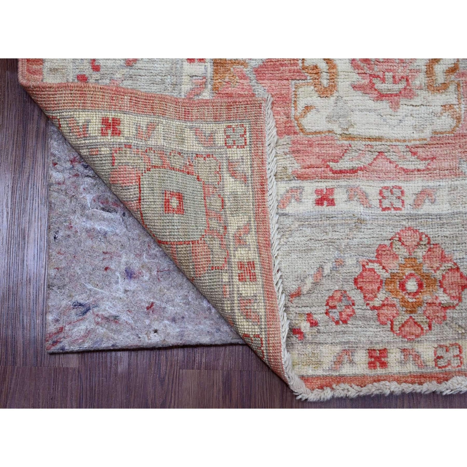 6'2"X9'1" Pink Afghan Angora Oushak Leaf Pattern Hand Knotted Wool Rug