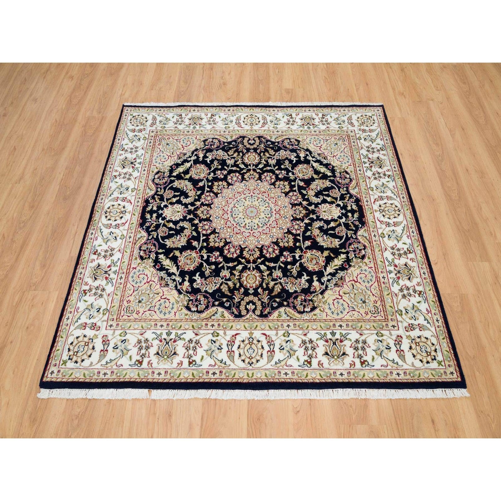 6'3"X6'3" Blue 250 Kpsi Natural Wool Hand Knotted Nain Design Square Rug