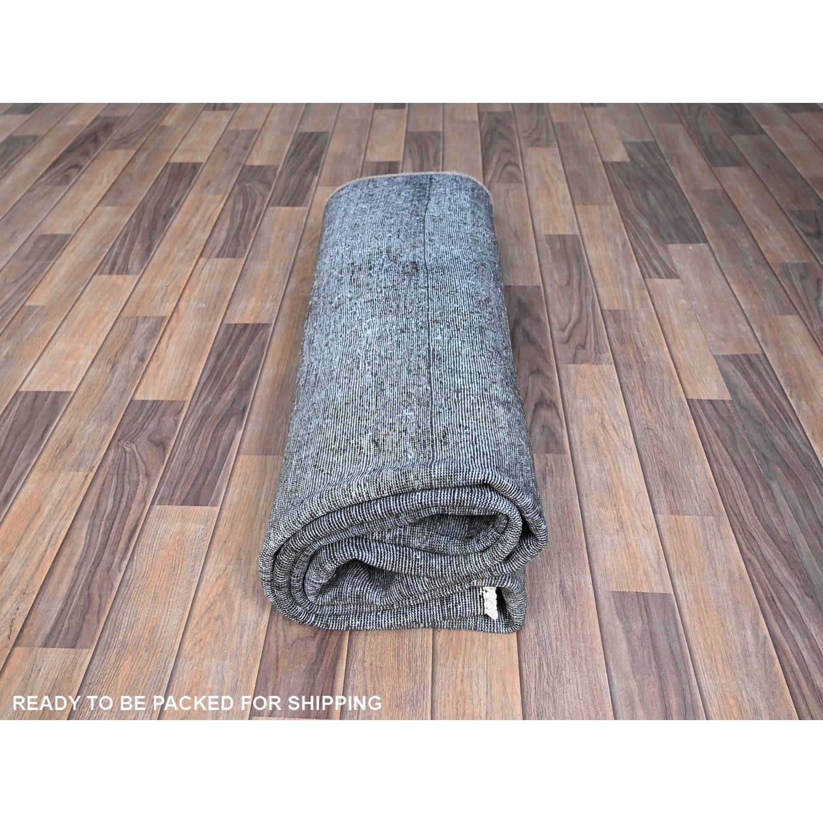 6'3"X9'3" Vulcan Black Hand Knotted Tebraz Evenly Worn Wool Oriental Rug