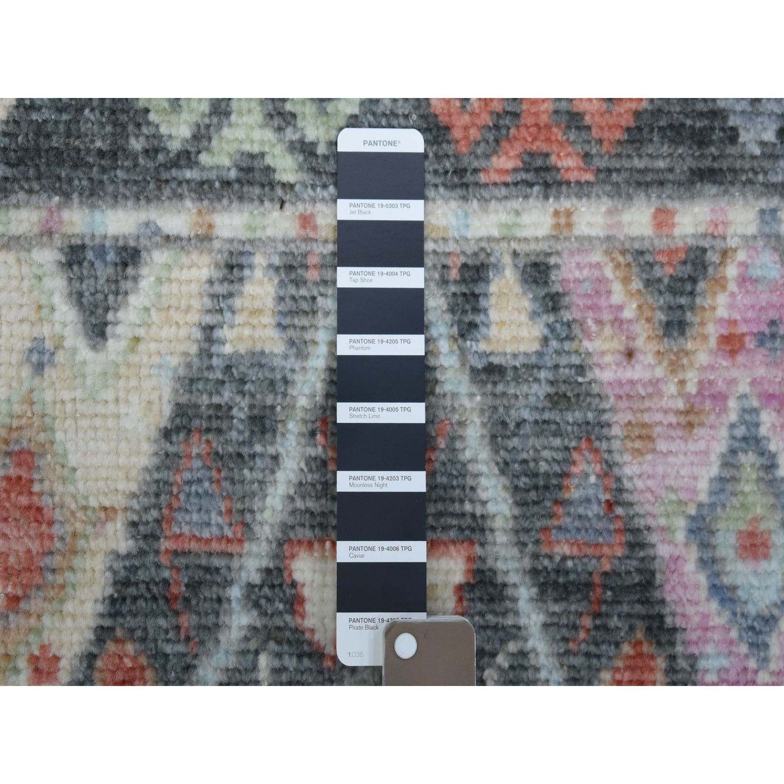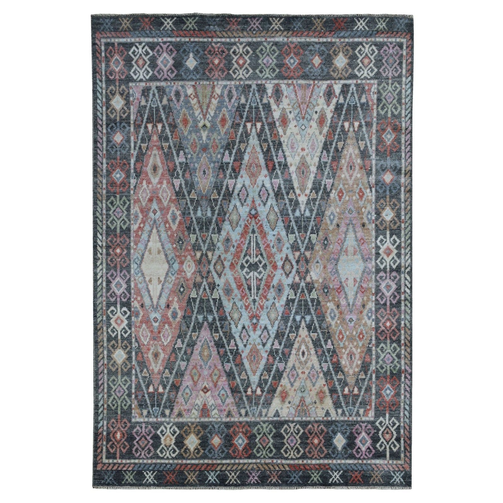6'4"X9'2" Charcoal Black With Anatolian Design Wool Hand Knotted Rug