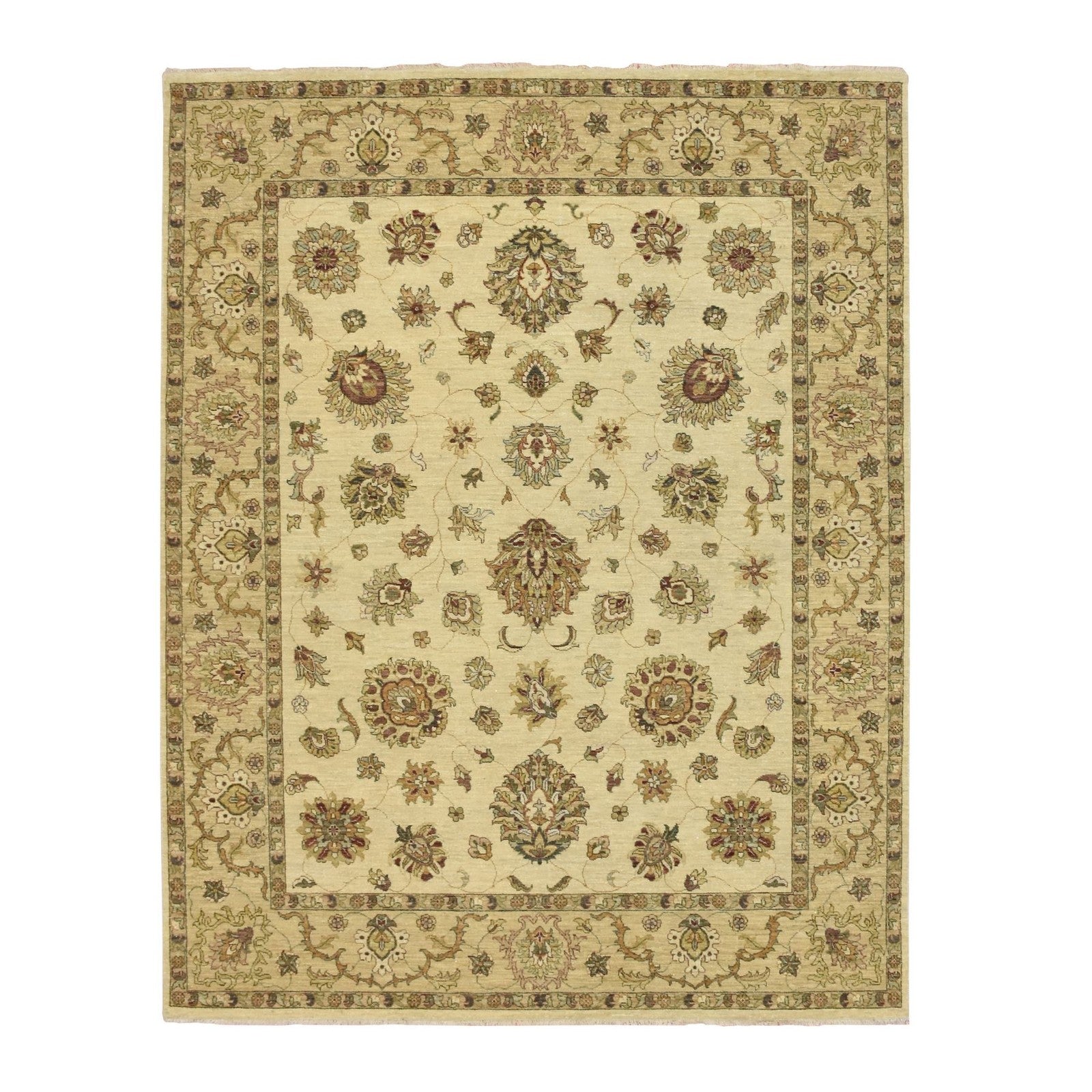6'5"X8'2" Ivory Agra Ziegler Design Leaf Pattern Hand Knotted Wool Rug
