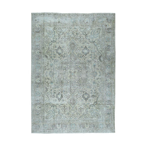 6'8"X9'6" Beige Vintage Worn Pile Hand Knotted Tribal Oriental Rug