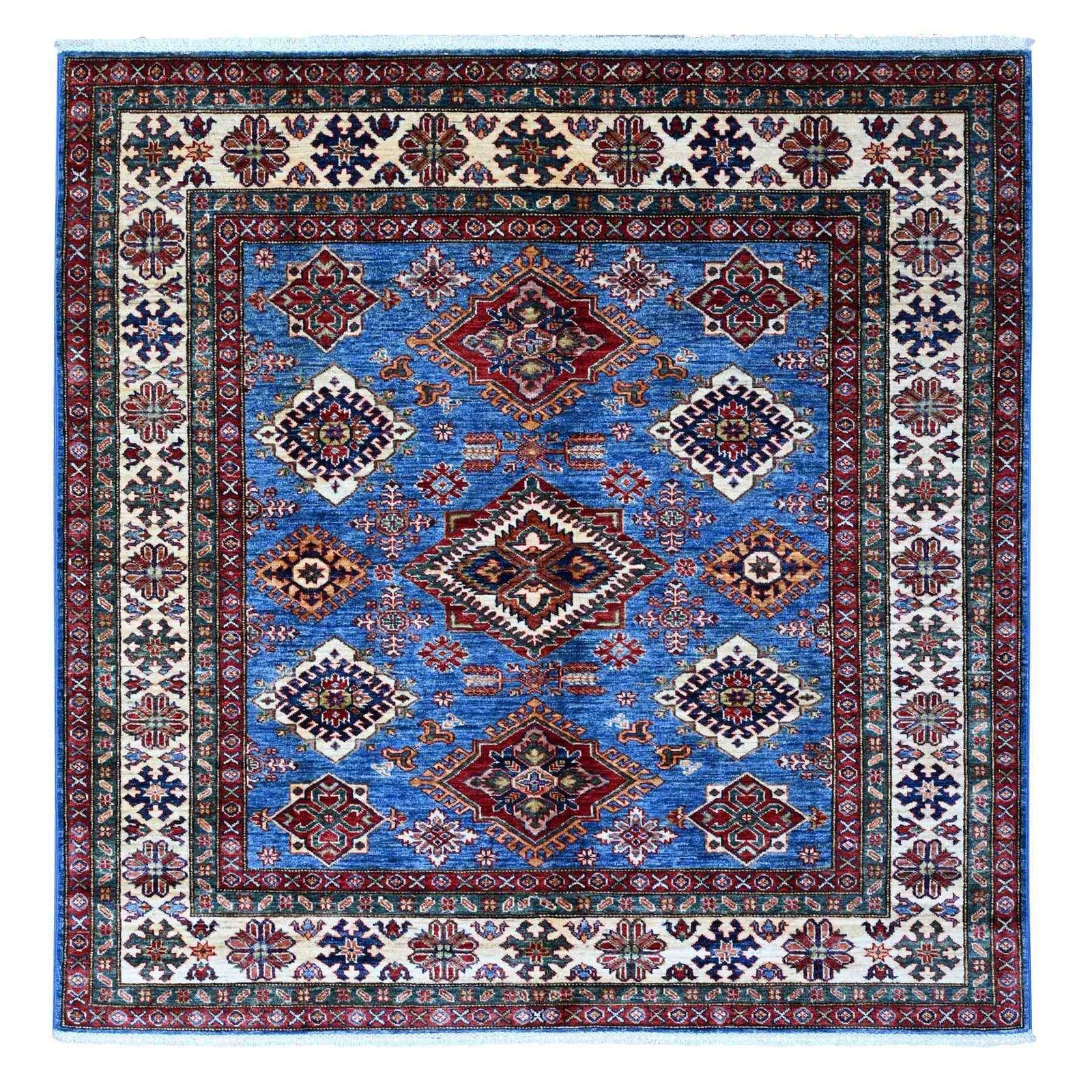 6'X6' Blue Hand Knotted Super Kazak Tribal Elements Square Oriental Rug