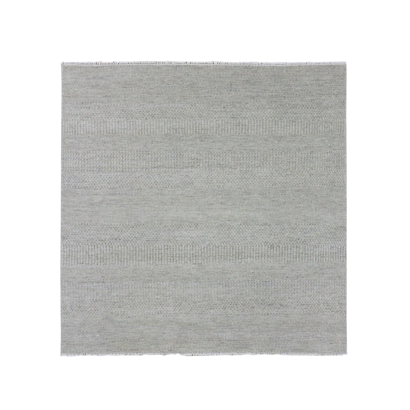 6'X6' Goose Gray 100% Undyed Wool Hand Knotted Grass Design Square Rug