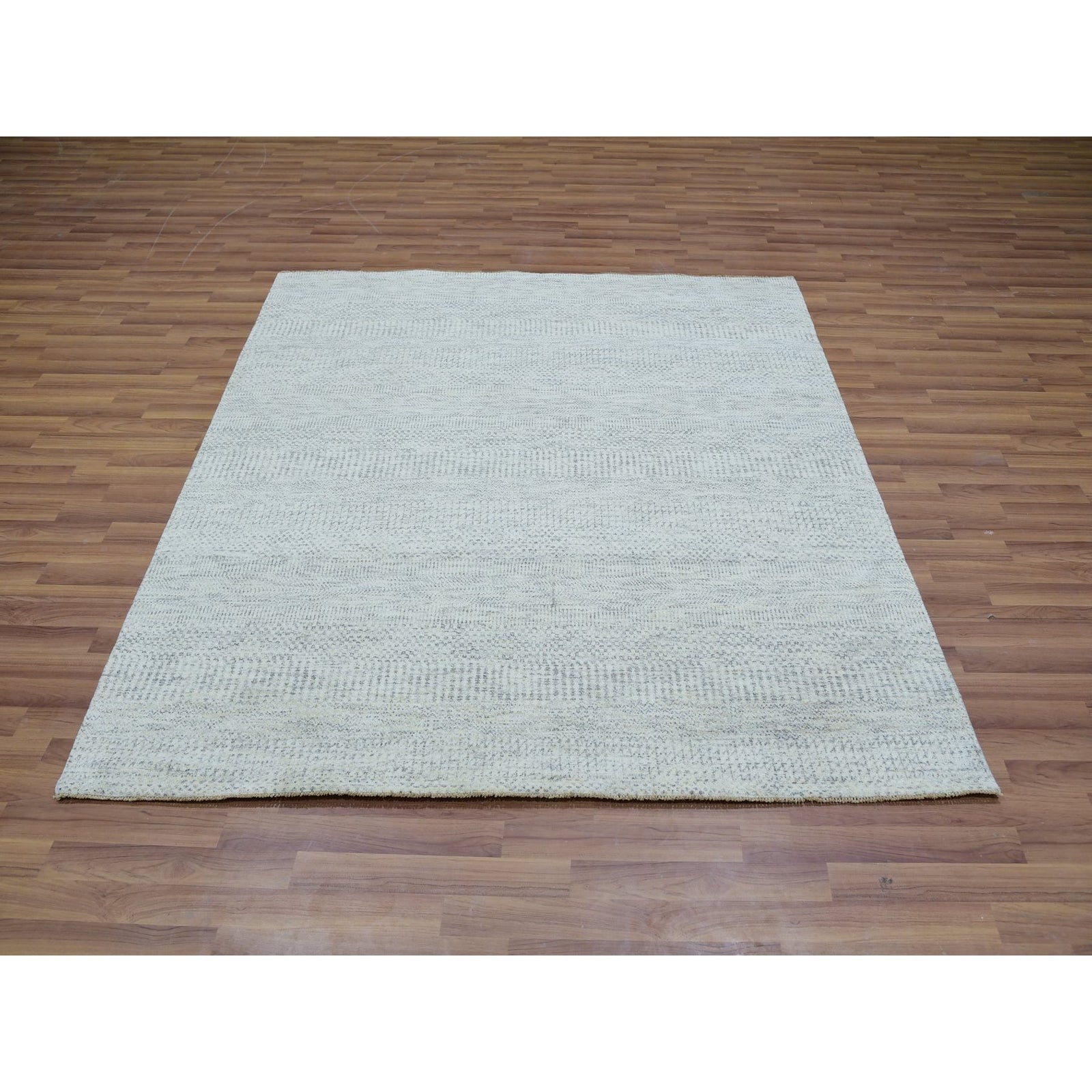 6'X6' Gray Hand Knotted Wool Modern Tone On Tone Grass Design Square Rug