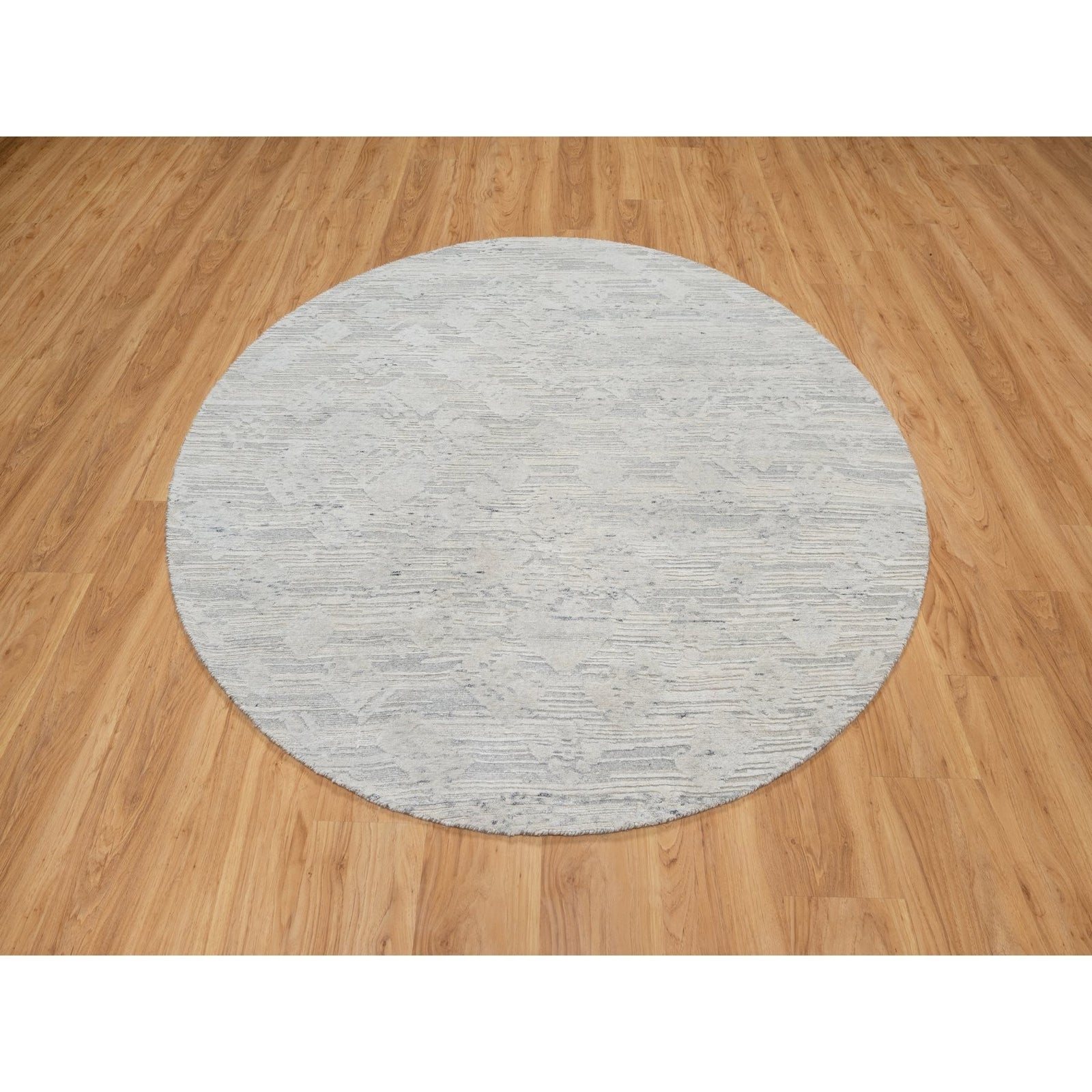 6'X6' Gray Modern Undyed Natural Wool Hand Knotted Round Oriental Rug