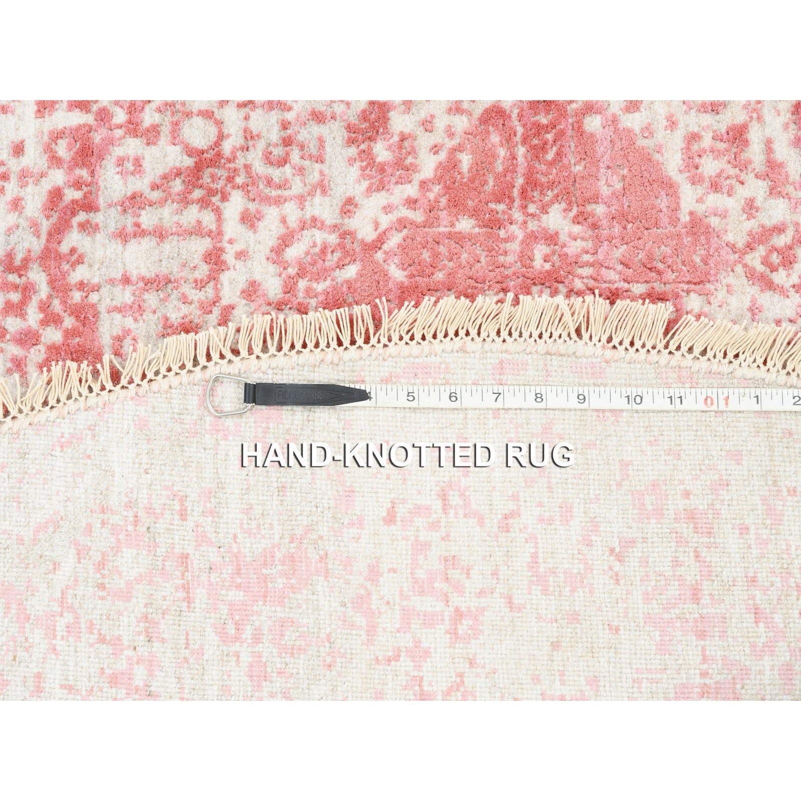 6'X6' Hand Knotted Pink Broken Farsian Design Wool And Silk Round Rug